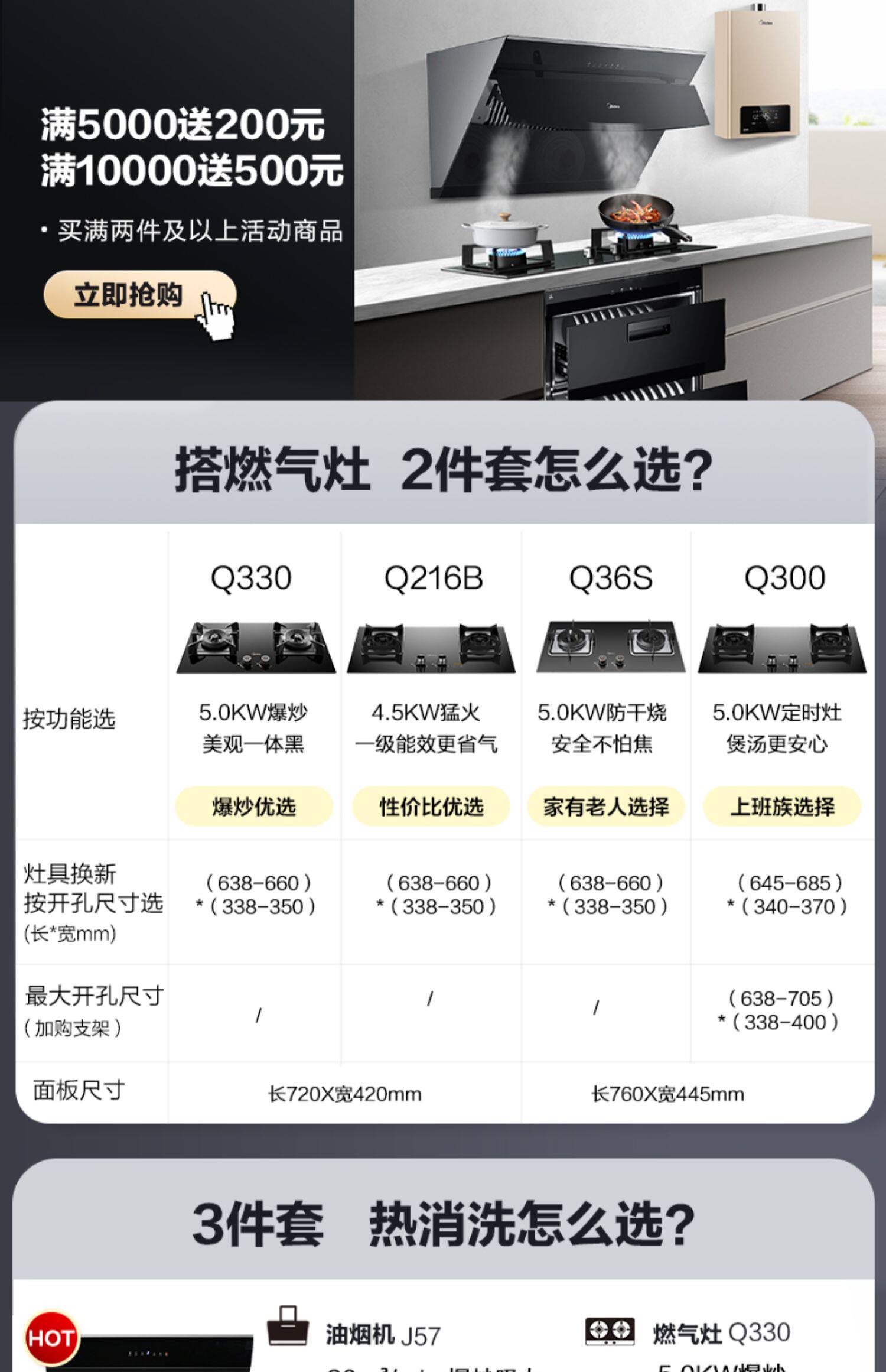 Midea JP50 Элементарная капюшонная плита для плита скортара кухня кухонная комбинация трехэтажная комбинация сигаретной печи тепла