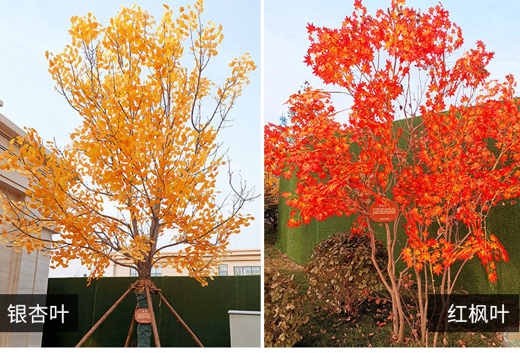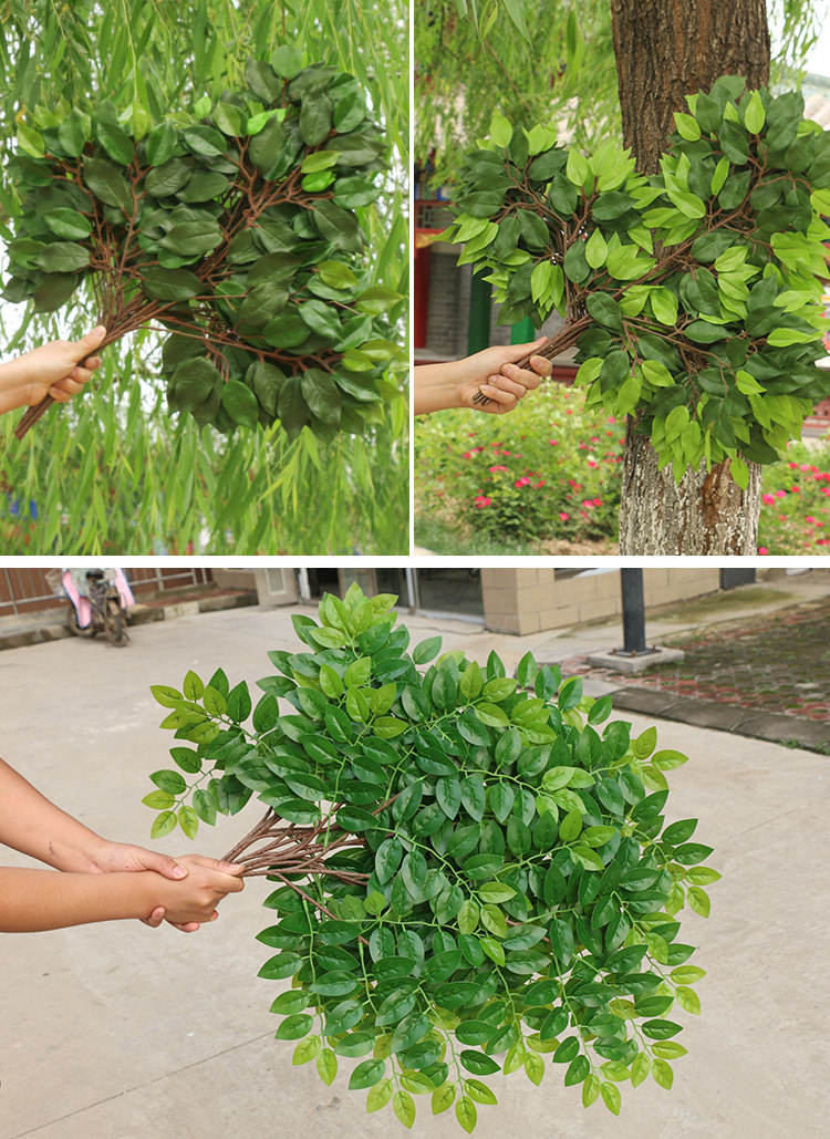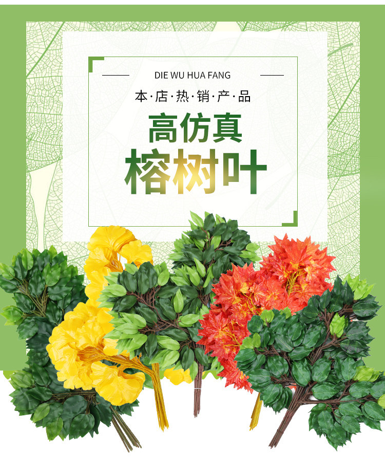Смоделируемые листья баньян проходят через резиновые пластиковые баньянские ветви зеленые растения гинкго красные листья кленового клено