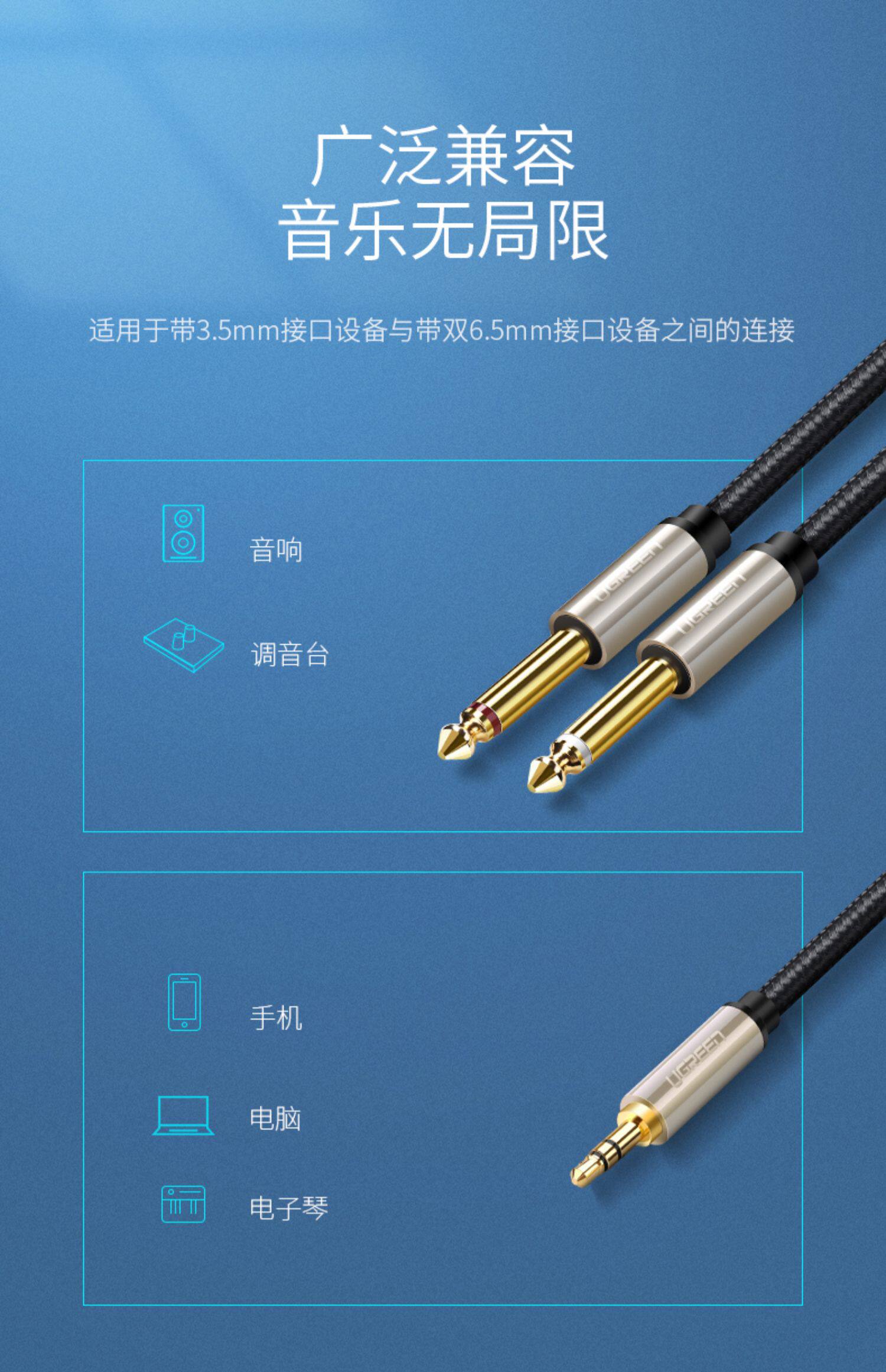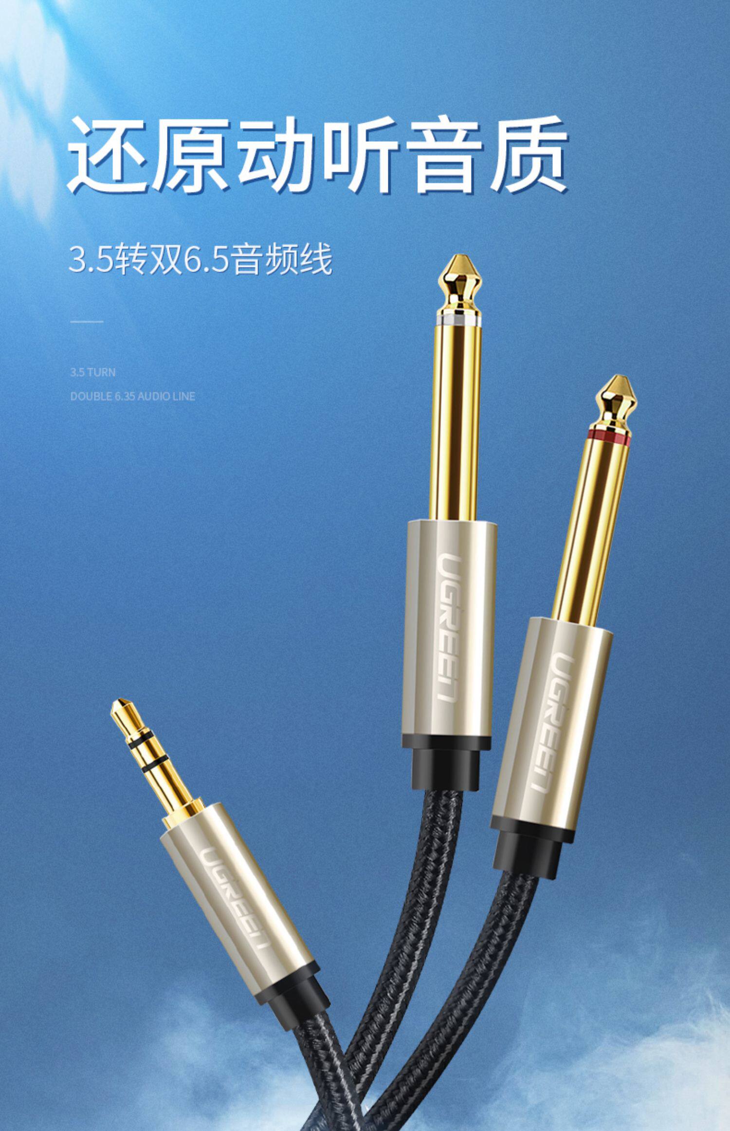 绿联 3,5 Вращение Двойное 6,5 Аудио кабеля одна минута в одну минуту 6,35 мм Большой двухкорный мобильный телефон компьютер. Соединение ноутбука Двухканальный динамик динамика микрофона микрофона микрофона телевизионный