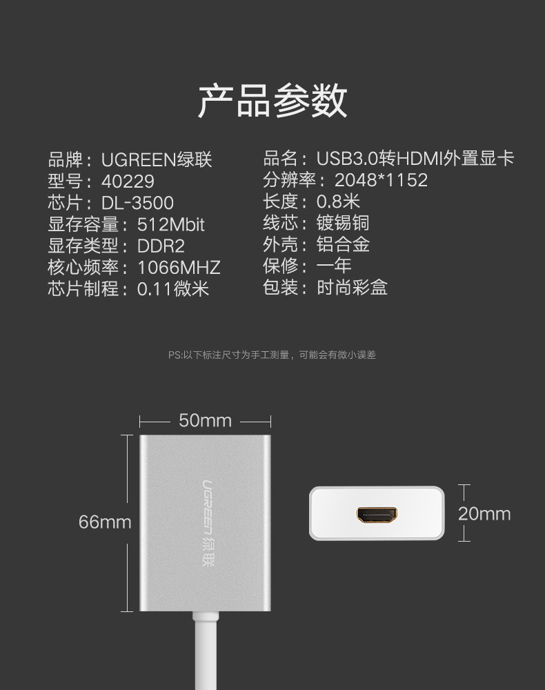绿联 USB Turning HDMI High -Definition Rotation Проводка, подходящая для Apple Notebook Host Computer USB3.0 Подключение телевизионного проектора Внешняя видеокарта Дисплей DVI Rotor to VGA