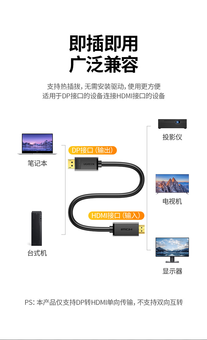绿联 DP к HDMI Cable Connector 4K HD подключение экрана компьютера интерфейс карты ноутбука Внешнее соединение Внешнее соединение