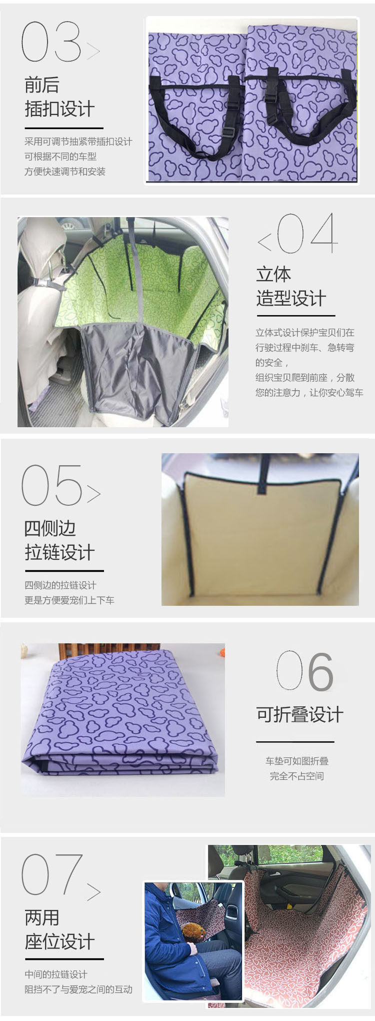 Функции:Водонепроницаемые ткани, изысканное пошив, пошив для вашей собаки и машины, решающие проблемы загрязнения и любви любви и любви во время путешествий.
