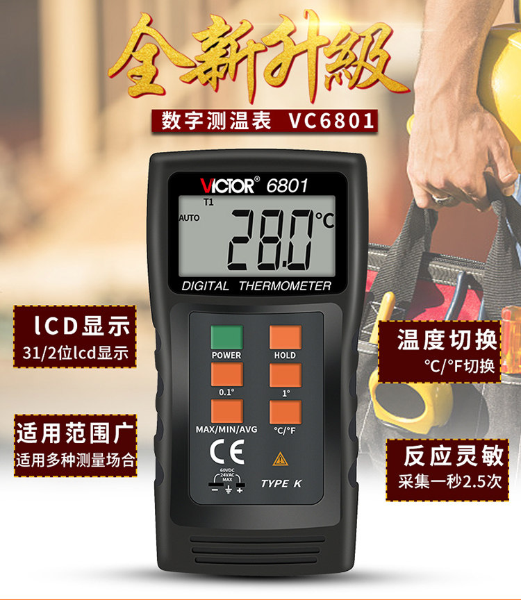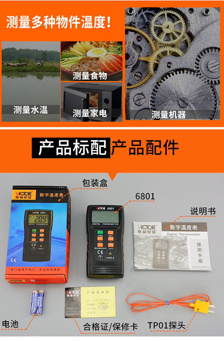 Victor Victory Digital Dempret DM6801A Число показано температуру Термометр термометр термометр термометр