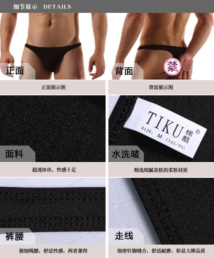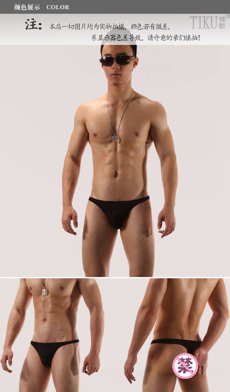 Прохладный прохладный, прохладный шелк шелк с низким содержанием сингл -сингл -одинокий цвет мужские трусики сексуальные выставленные бедра Tiku1693