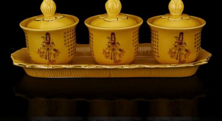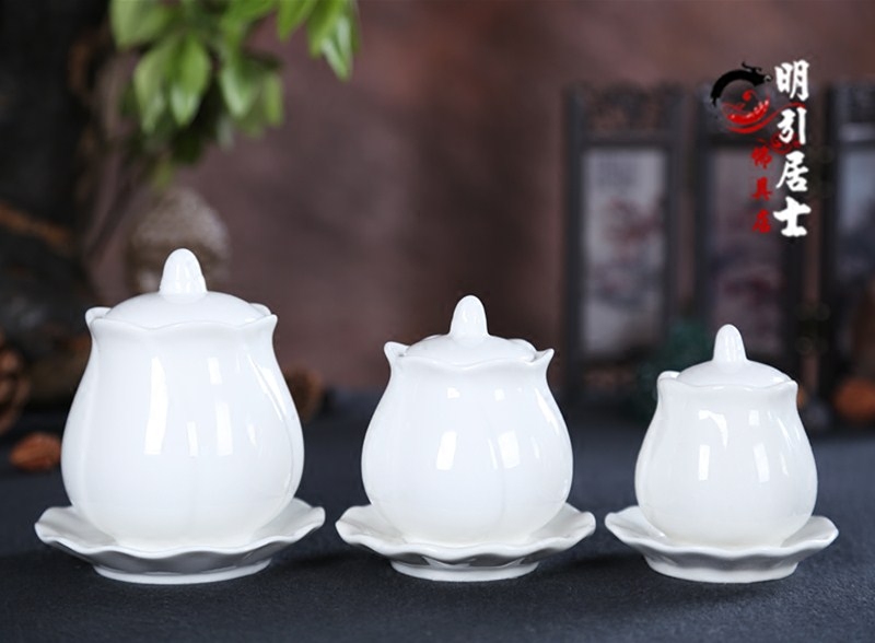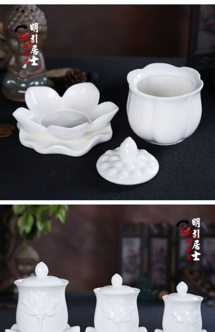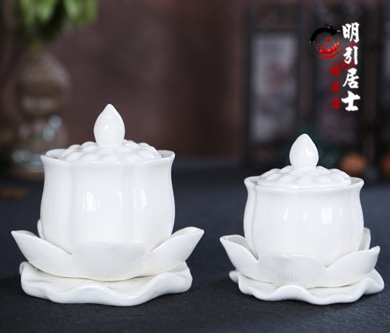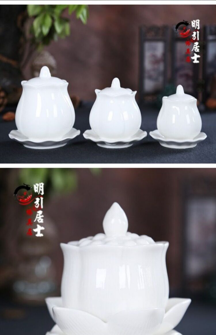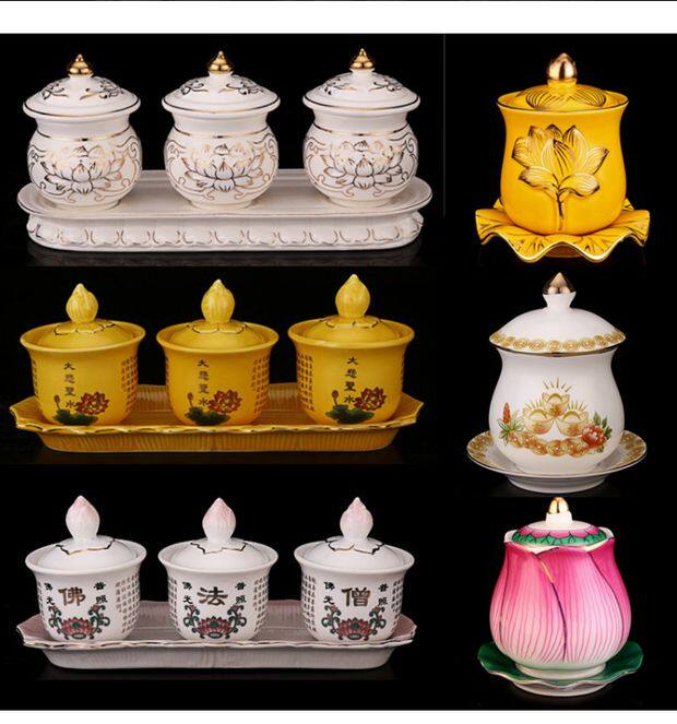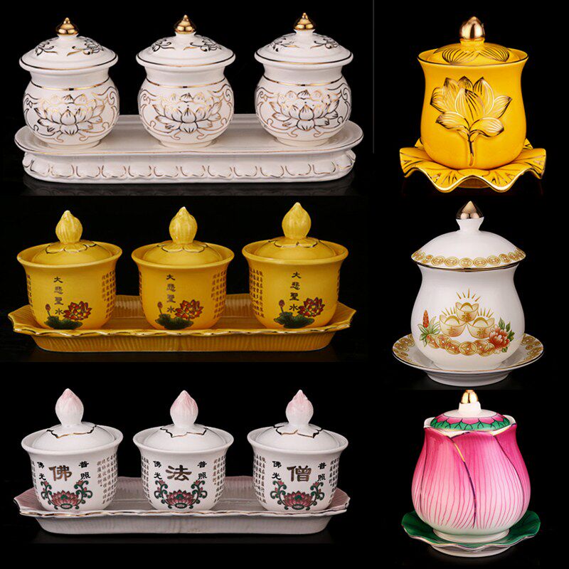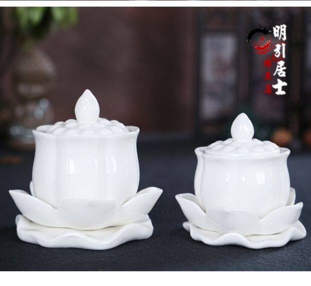 Буддийский храм поставляет буддийский храмовый водопровод чашки священной воды, большая трагедия, керамическая лотос