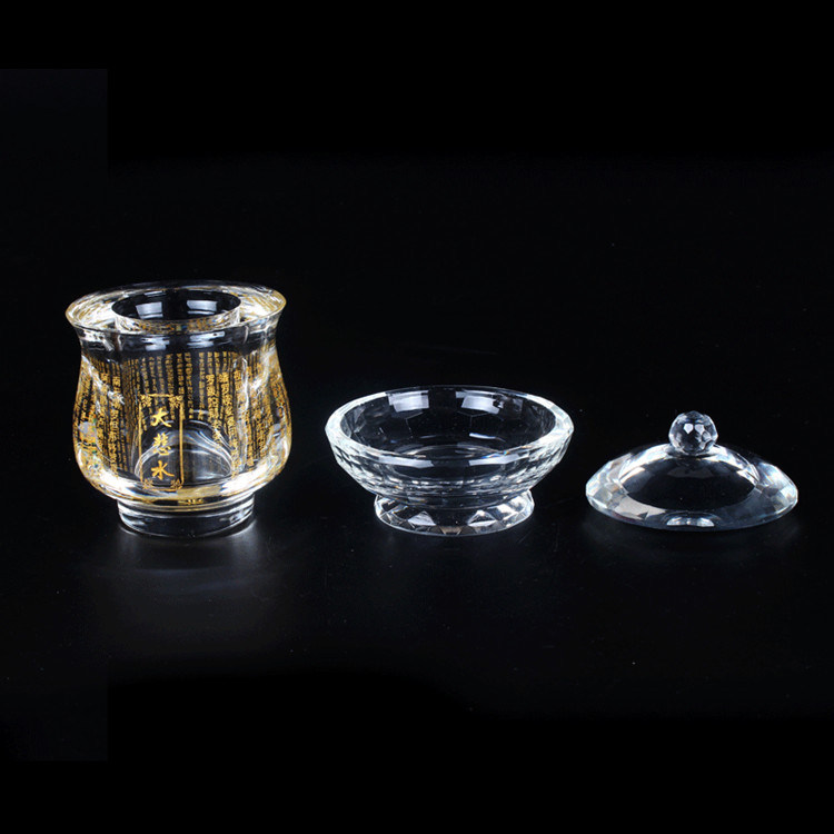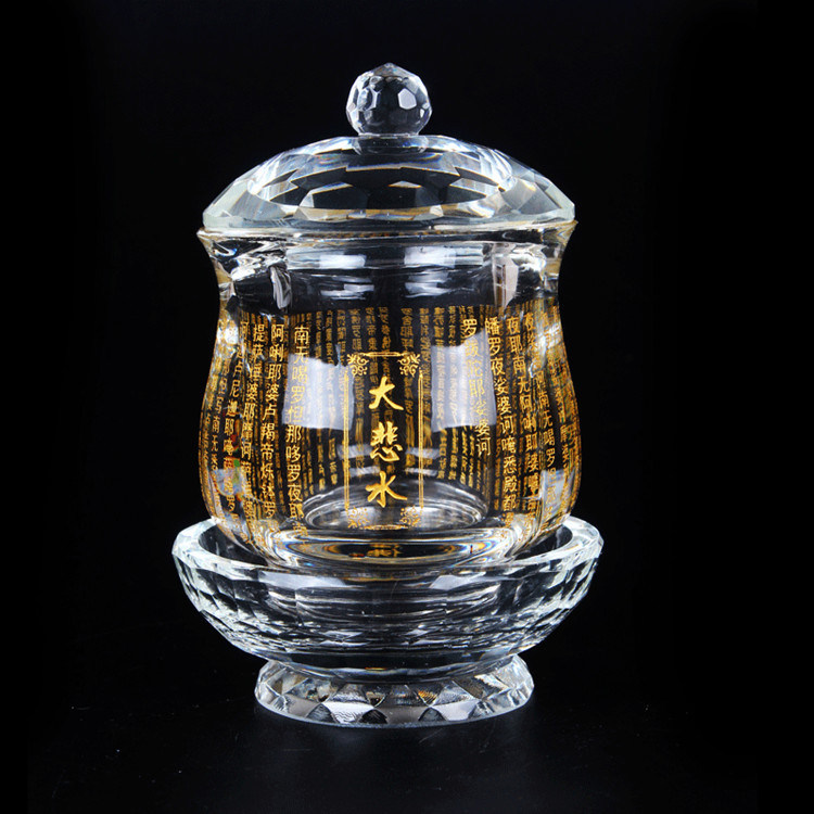 Буддийский поставляет буддийские чашки для водоснабжения в Храме, чтобы описать золотую трагедию Священную водяную чашку хрустальная чашка чашка стакана чашка чистая бутылка Будда