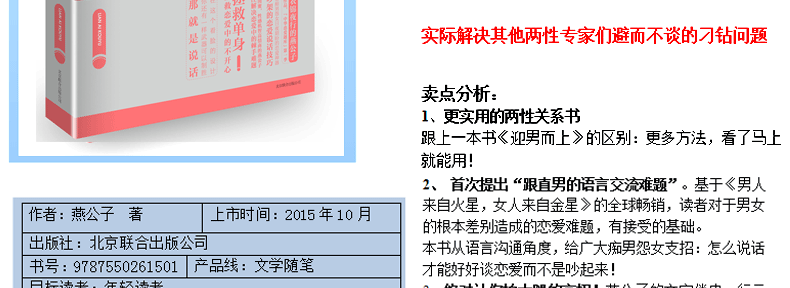 2,предложил впервые“Трудности в общении с прямыми мужчинами”.На основе сюжета «Мужчины с Марса, женщины с Венеры» у читателей появляется основа для принятия любовных проблем, вызванных принципиальными различиями между мужчиной и женщиной.