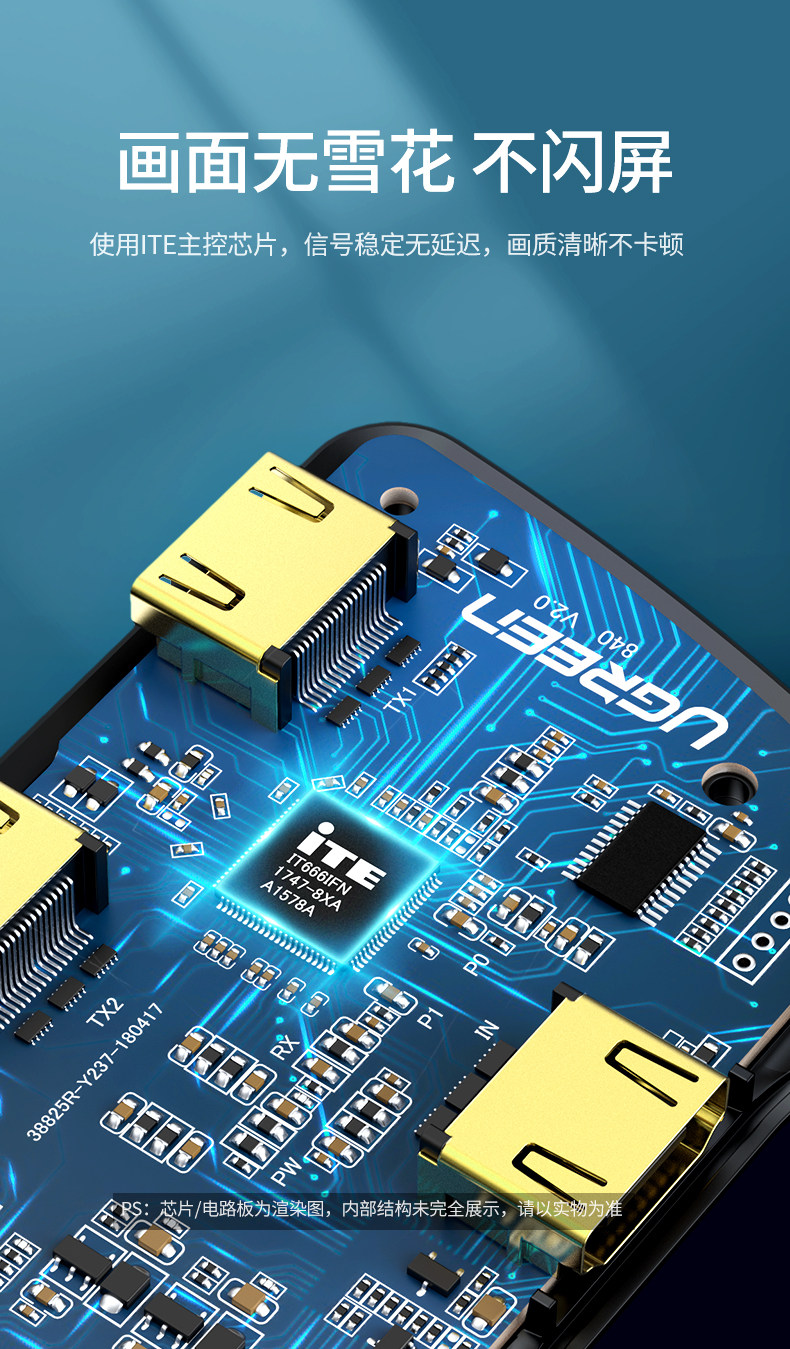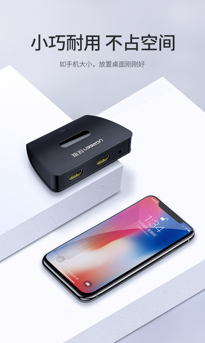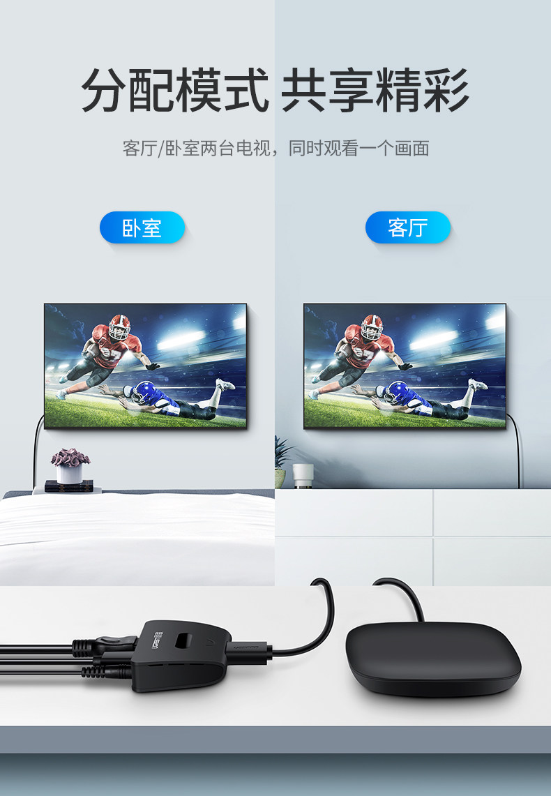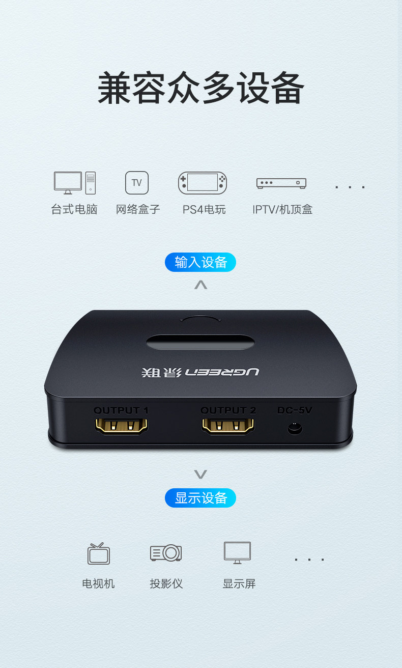 绿联 Дистрибьютор HDMI Один из двух розетков, одна точка, два 4K High -Definition Set -Top Box Display TV Notebbook Games 1 in, 2, один перетаскивание двух -дисктоп компьютеров