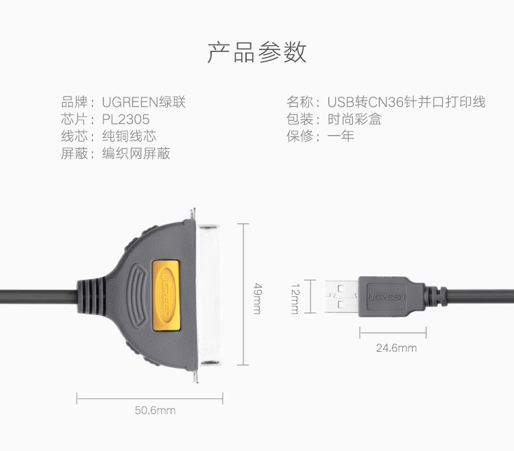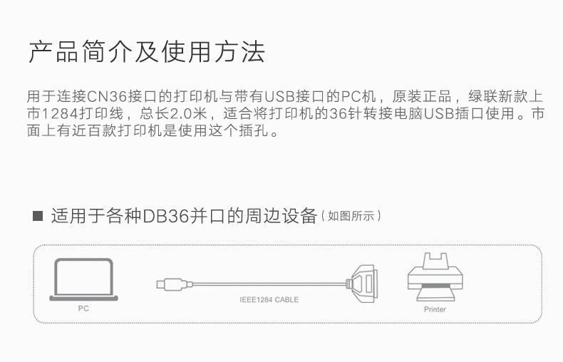 绿联 USB Connect Port Printer Data Cable 36 Pinks 25 Линия подключения к обработке данных DB36 Старая типовая печатная линия линия 1284 подходит