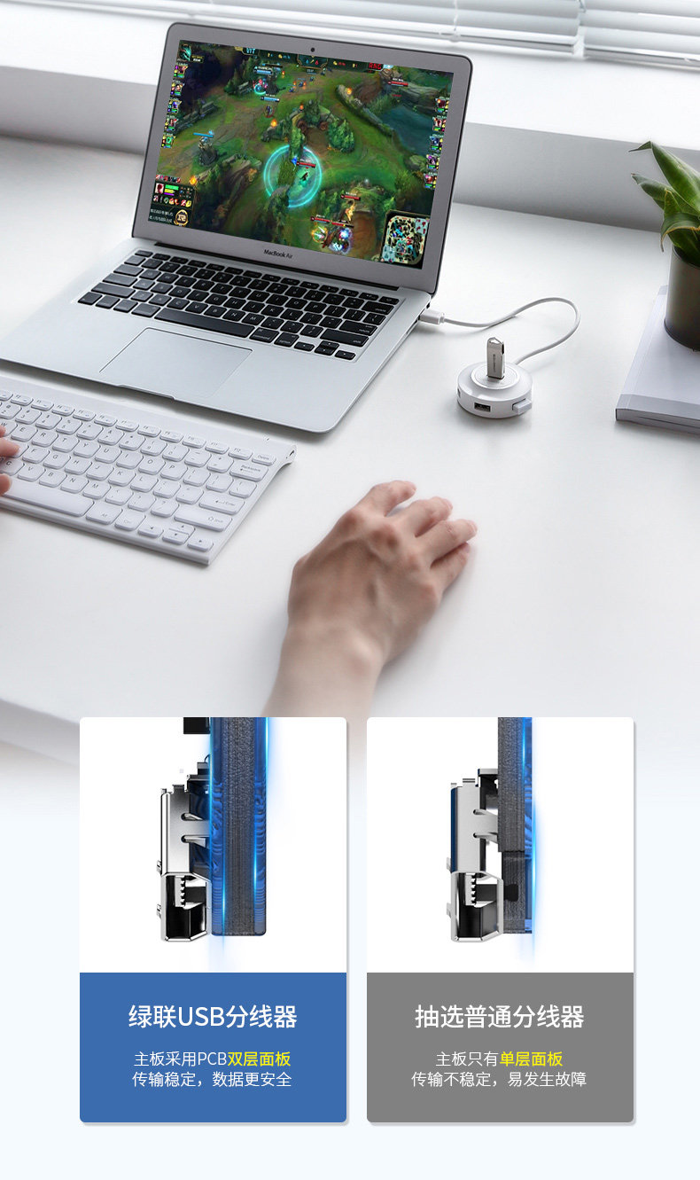 绿联 USB USB Semifier Oversion Curvination Совместное многократное ноутбук Type-C компьютер USB Расширение док.