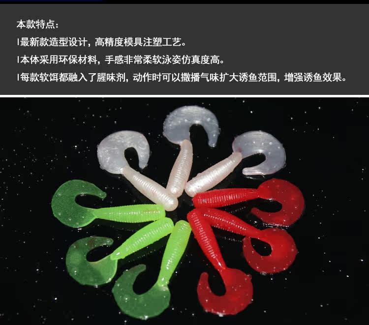 Представление продукта: Эта мягкая приманка является представительной мягкой приманкой, которая привела к популяризации ловли на приманку и была хорошо принята многими рыбаками.Даже небольшое усилие за закрученный хвост будет сильно реагировать, подчеркивая естественность и ритмичность ловли.Кудрявая личинка имеет уникальную форму. Его хвост в форме полумесяца, когда его тянут в воде, имитирует покачивание хвоста рыбы влево и вправо, привлекая внимание рыбы и атакуя!
