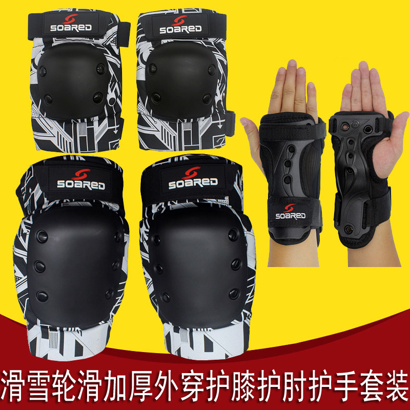 Лыжные наколенники, спортивные налокотники, скейтборд для уличного катания для взрослых, лыжное защитное снаряжение, комплект, увеличенная толщина