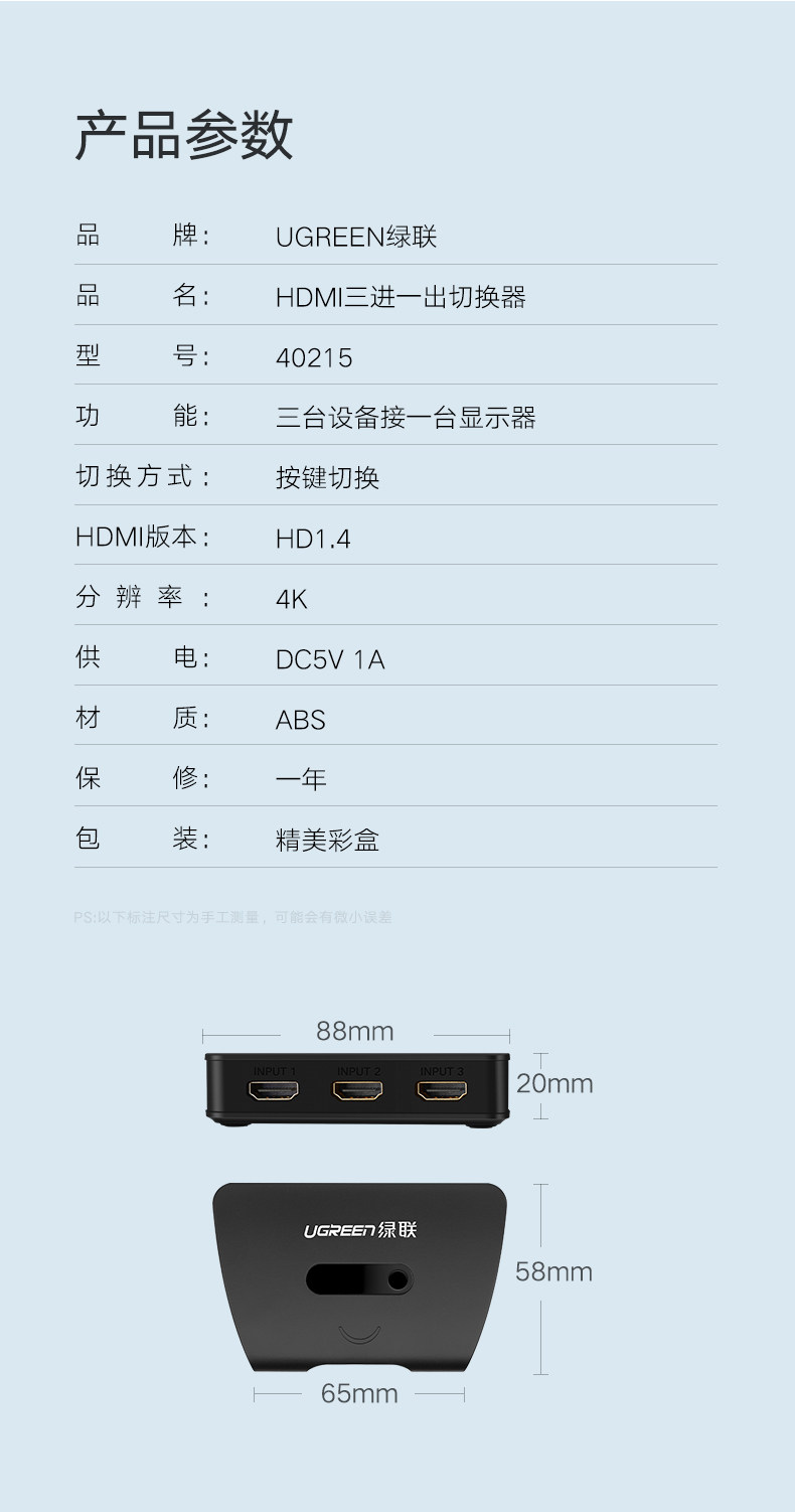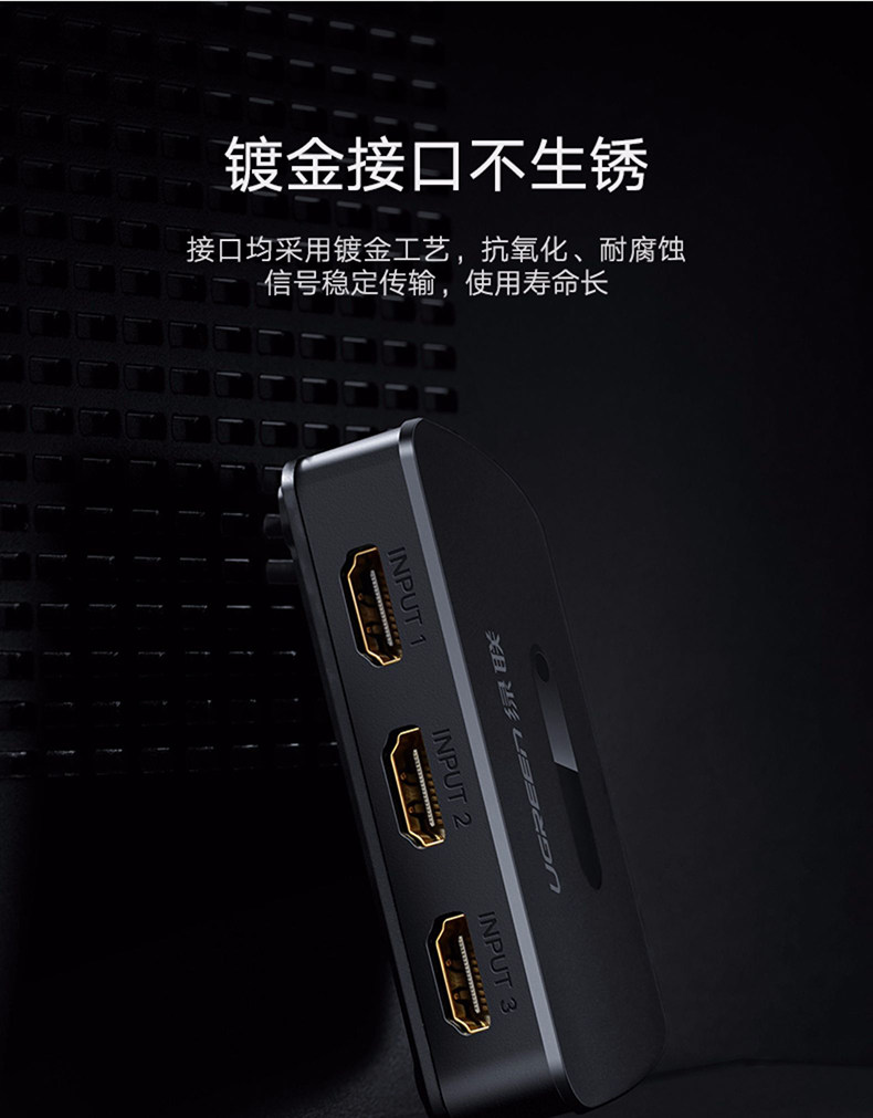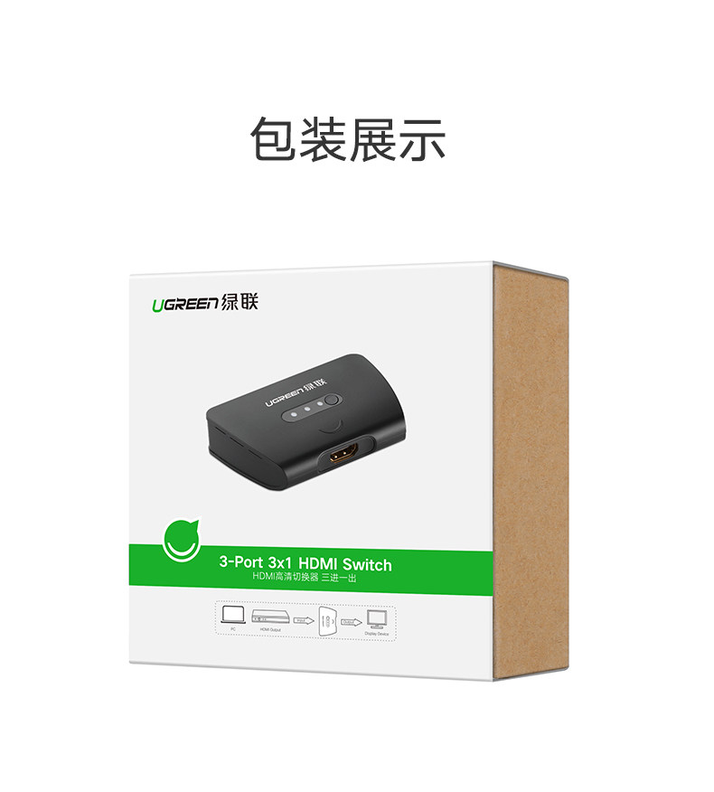 绿联 HDMI Переключение трех -в одном высокооборотном видеомониторовне 3: 1 OUT -Of -Screen Проектор Проектор компьютер.