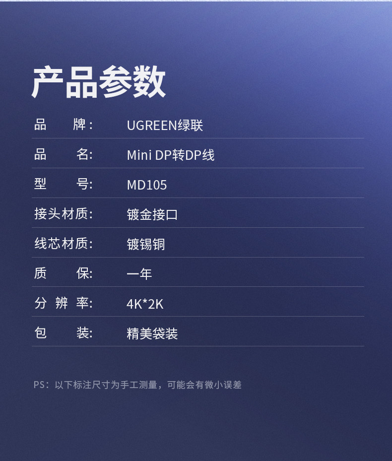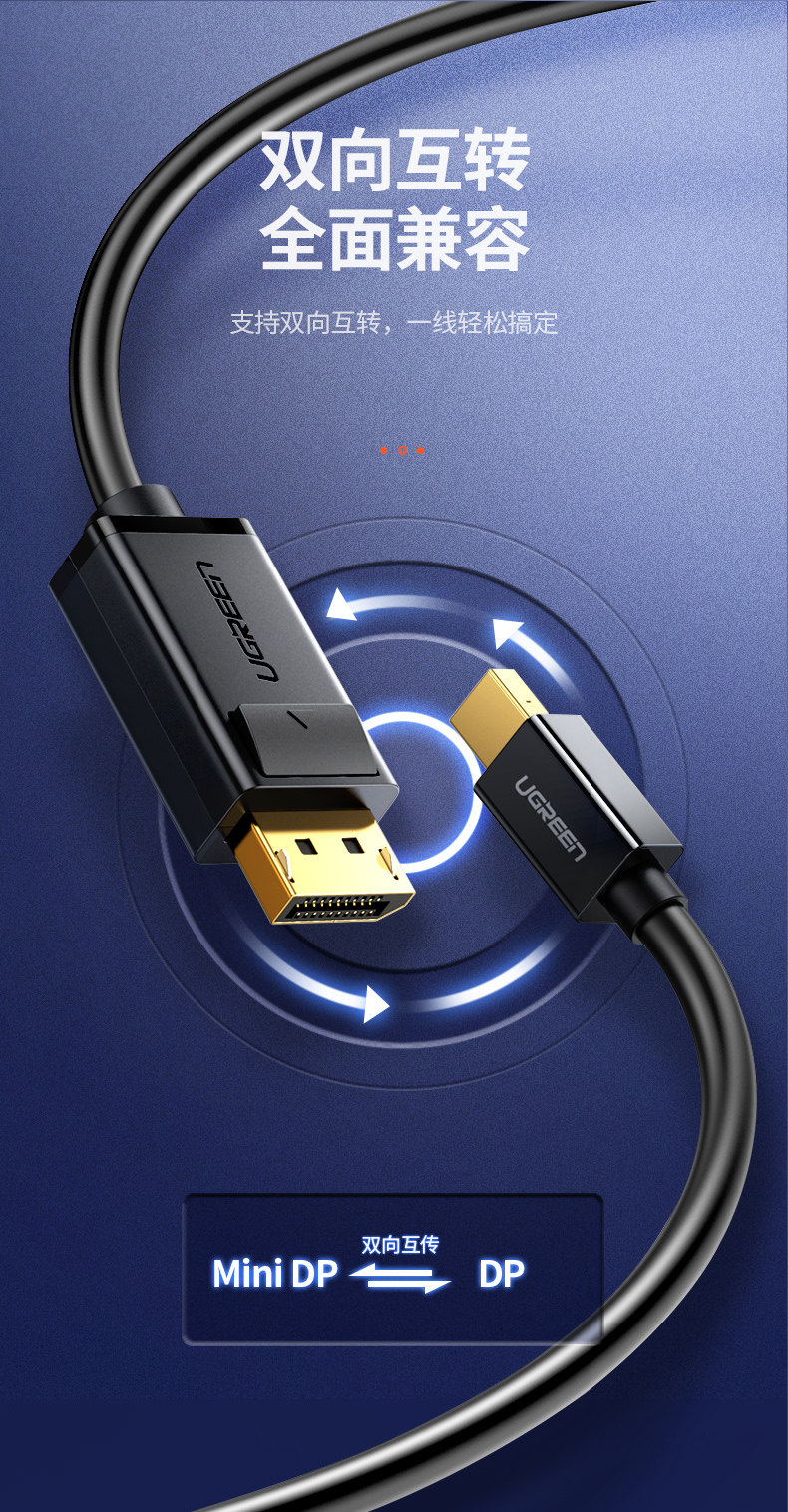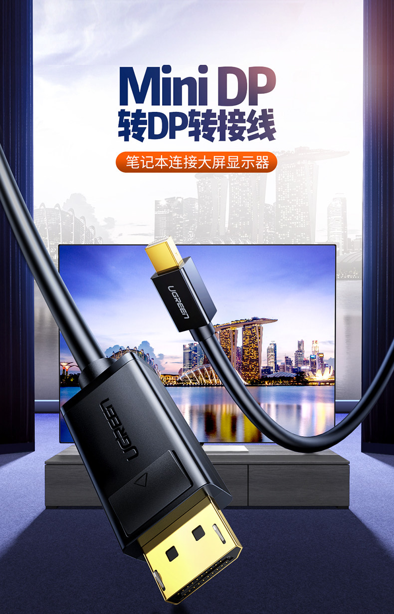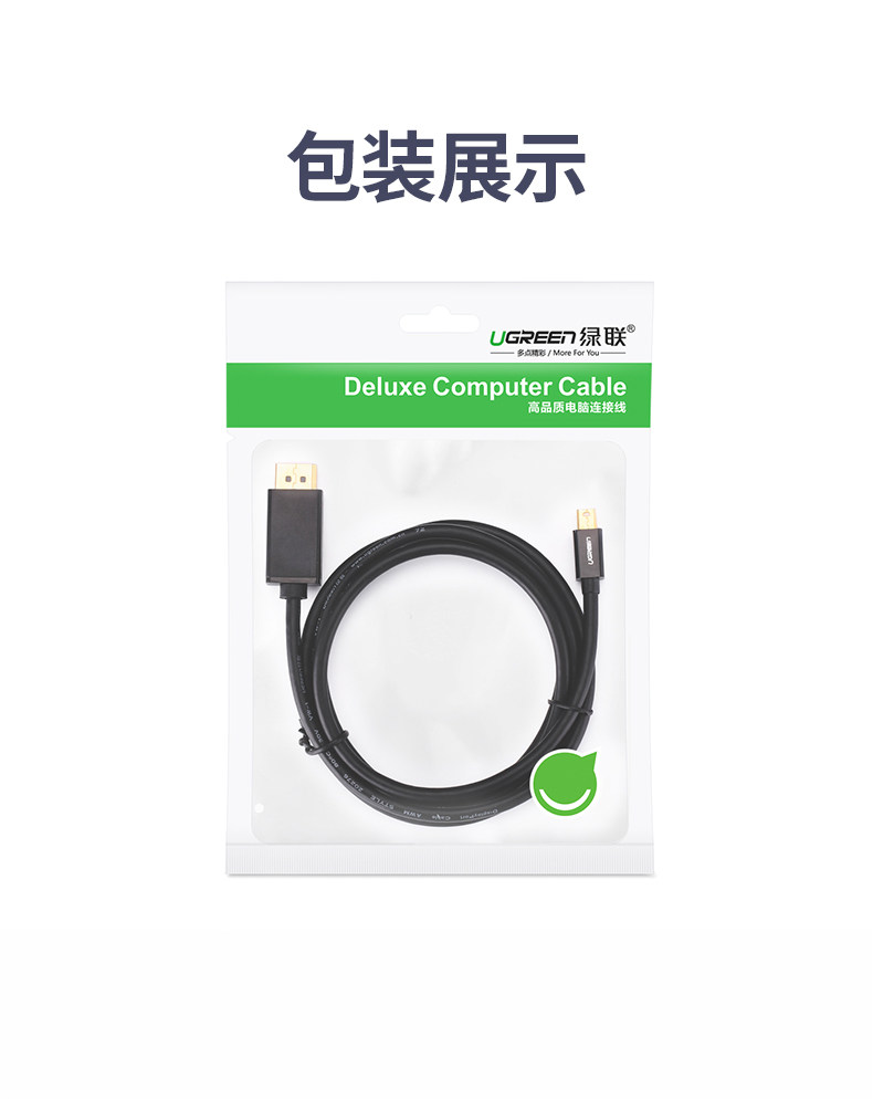 绿联 Minidp to DP Кабель 1.2 подходит для компьютерного мини -дисплея Mini DisplayPor Lightning Port Ноутбук 2K1444 Гц Адаптер Кабель Дисплей Проектор 4K Аудио и видео подключаемого подключения
