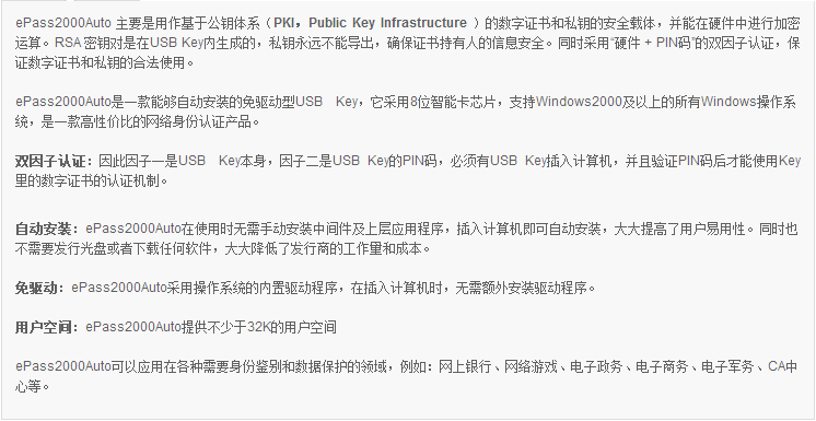 USB -ключ серии EPASS (или токен USB) в основном используется в качестве оператора безопасности цифровых сертификатов и частных ключей на основе систем открытых ключей (PKI). Перенись сверху.