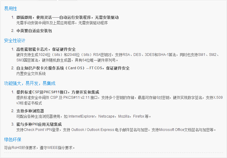 Пара клавиш RSA генерируется в USB -ключе. Частный ключ никогда не может быть экспортирован, чтобы обеспечить безопасность владельца сертификата.Используйте одновременно“ ключ+PIN -код&Rdquo; двойная акфакторная аутентификация для обеспечения законного использования цифровых сертификатов и частных ключей.Так называемые“ ключ+PIN -код” Двойная аутентификация фактической подлинности относится к: USB -ключ, который должен быть вставлен в компьютер, а PIN -код должен быть проверен перед использованием клавиши в ключом для подписи.