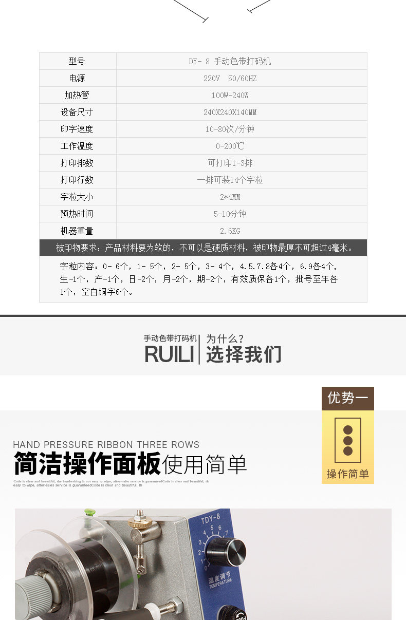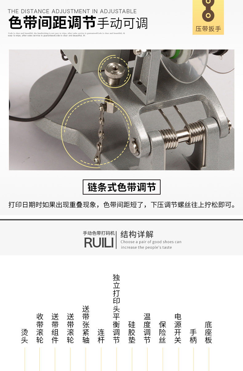 瑞立 Ручная марка код полосы Машина Электрическая лента Код Код Автоматическое отслеживание ленты тепловой машины Трехнокожая кодирование