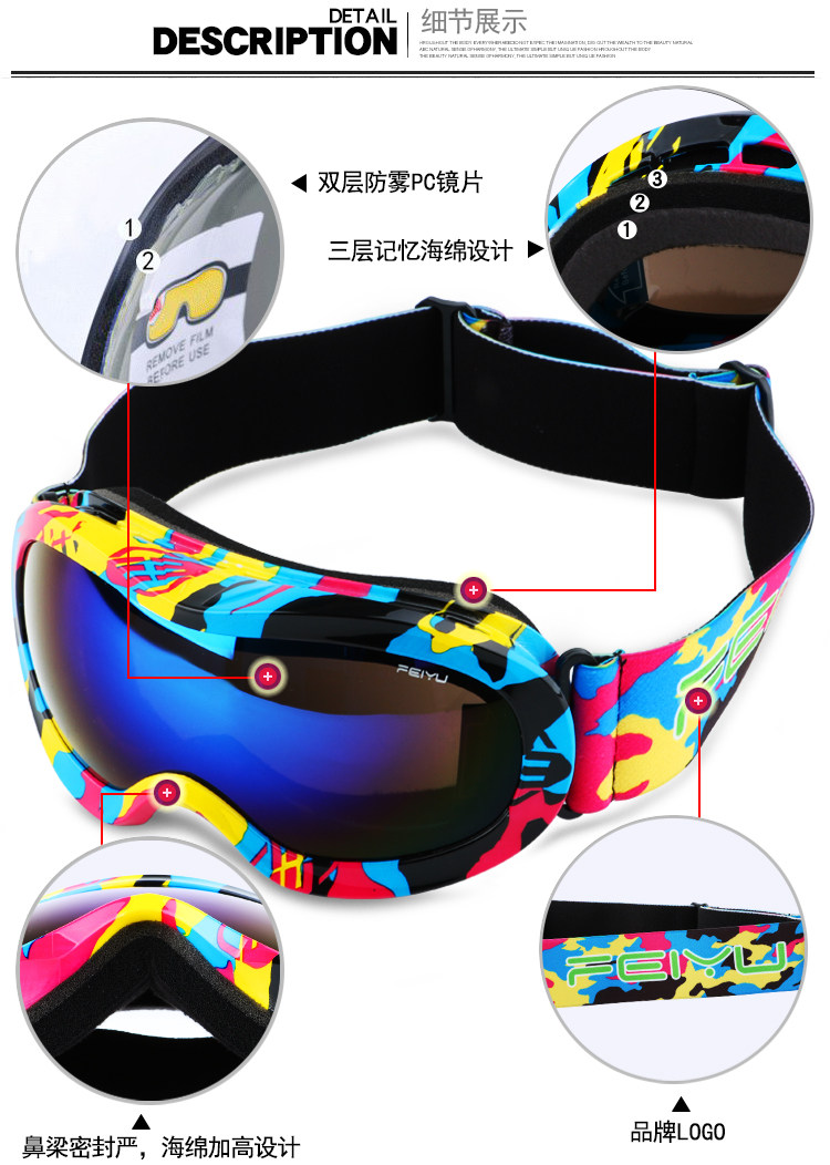 Детские лыжные двухэтажные очки без запотевания стекол подходит для мужчин и женщин, дорожное снаряжение