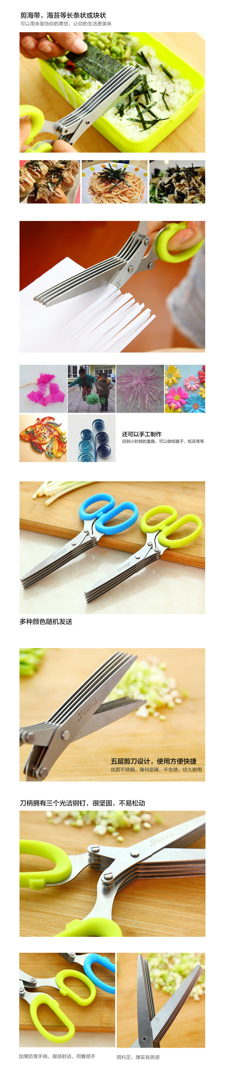 Кухня всегда доступна луковые ножницы, острая нержавеющая сталь, пять слоев зеленого лука, разбитых морских водорослей, сдвига, 1 Force Multi -Layer Ncissors