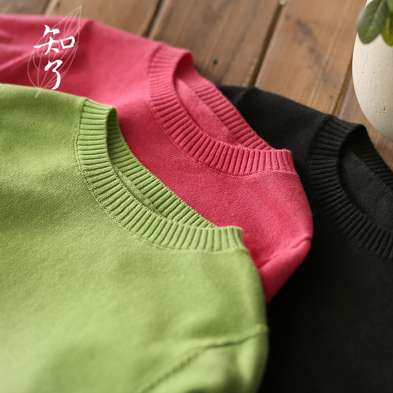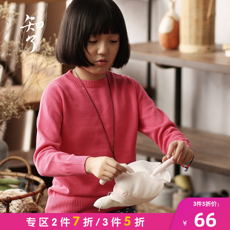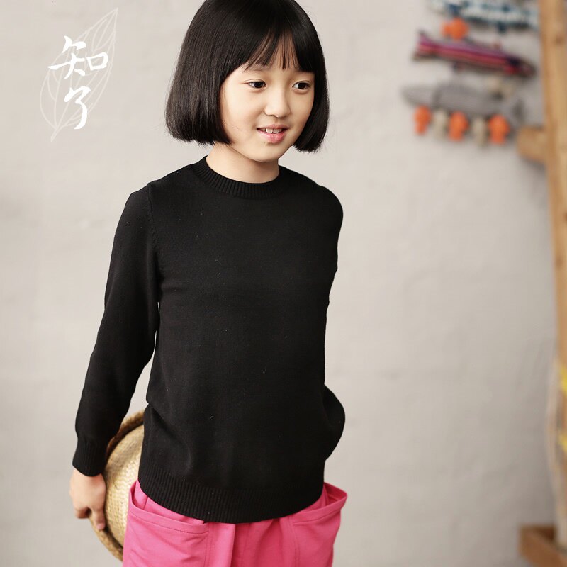 知了 Осенний трикотажный свитер с круглым воротником, хлопковая рубашка, детская одежда