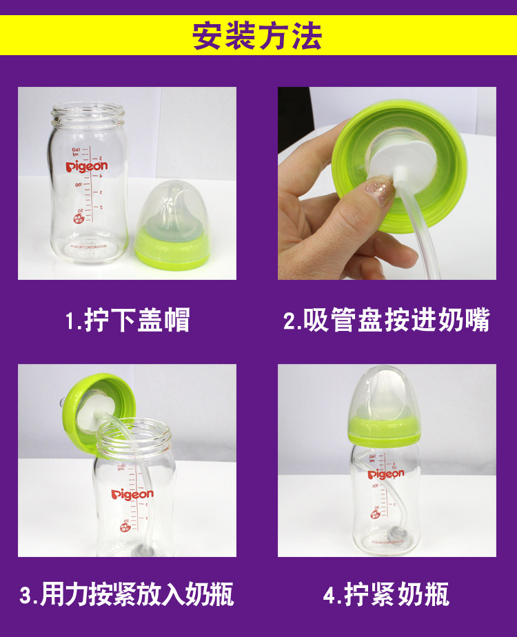Pigeon, бутылочка для кормления, универсальная трубочка со стаканом, широкое горлышко, 3