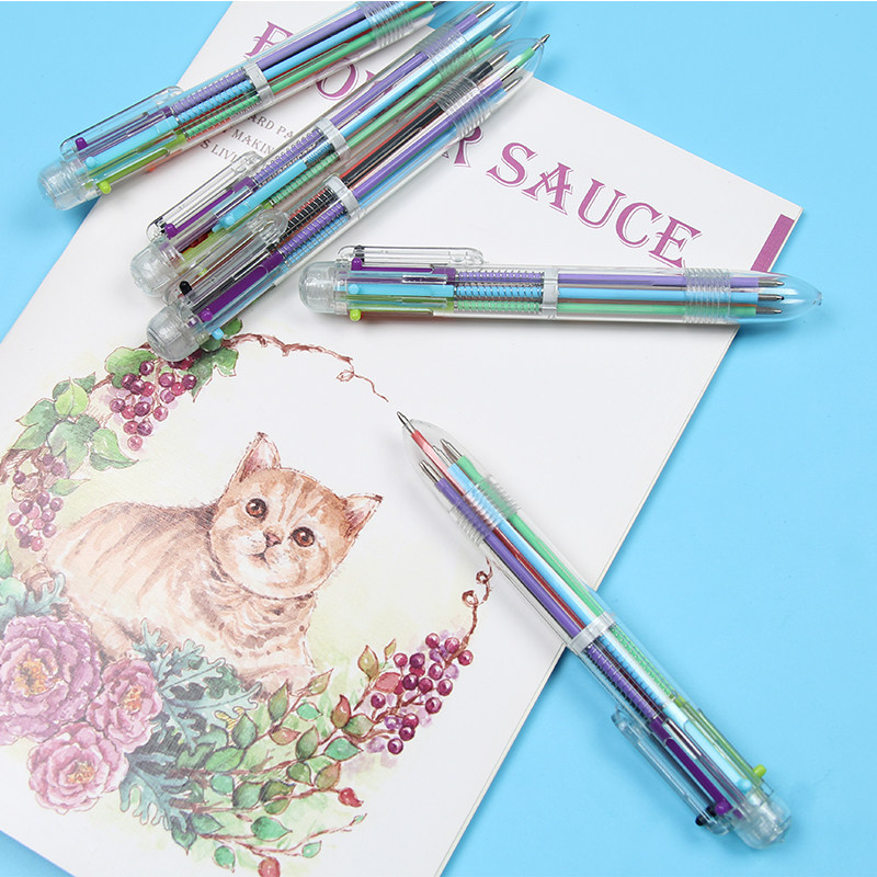 Креативная прозрачная милая универсальная шариковая ручка, многоцветные цветные карандаши для школьников и студентов, простой и элегантный дизайн, 6 цветов