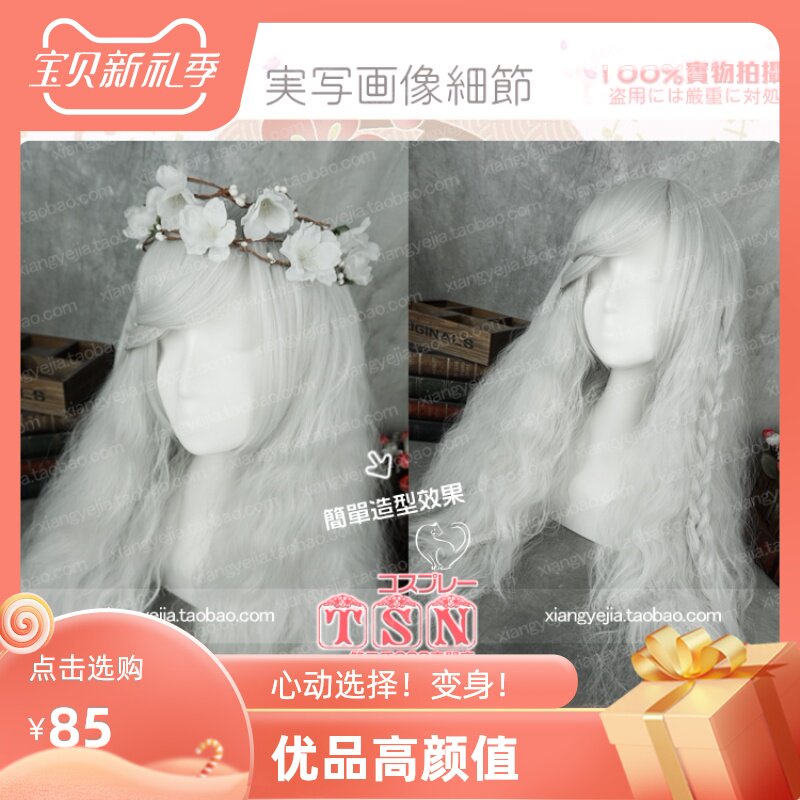 Вторая семья серебристая лолита я мягкая девочка Ice Realm Девушка Серебряная волоса завитует парик SH-577-01