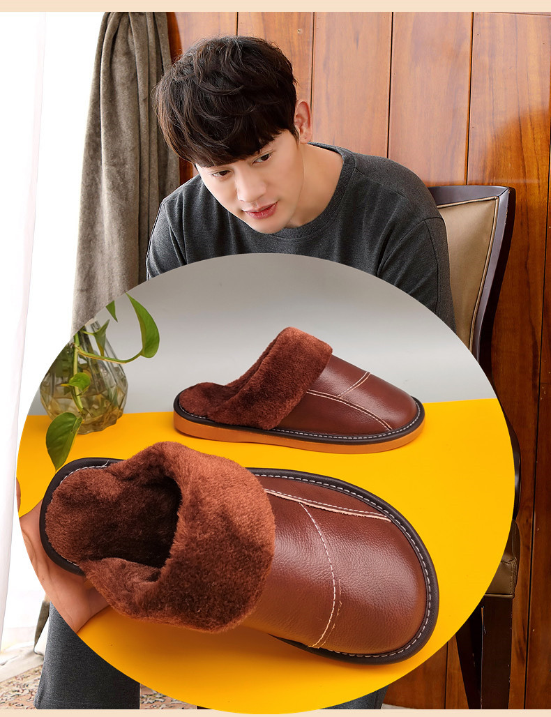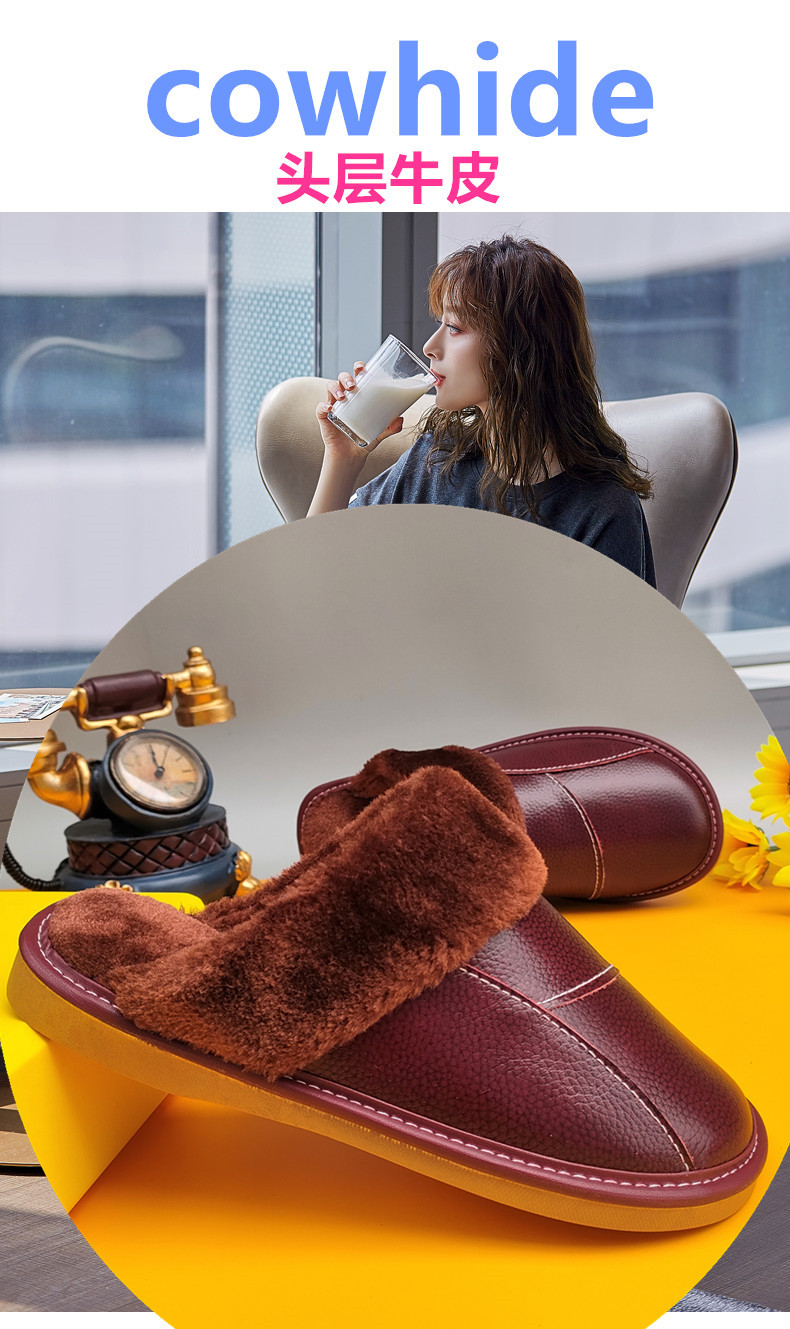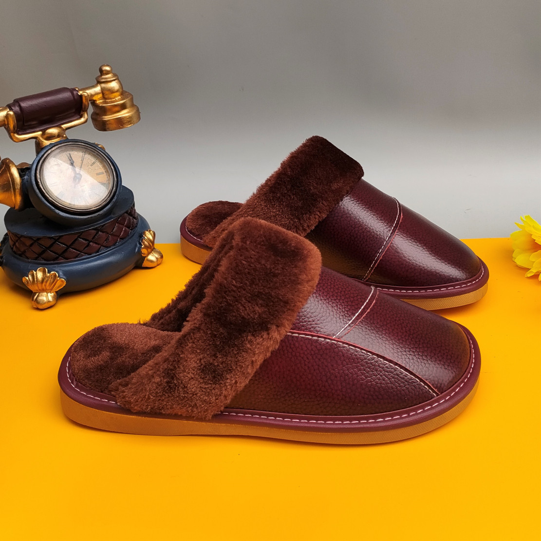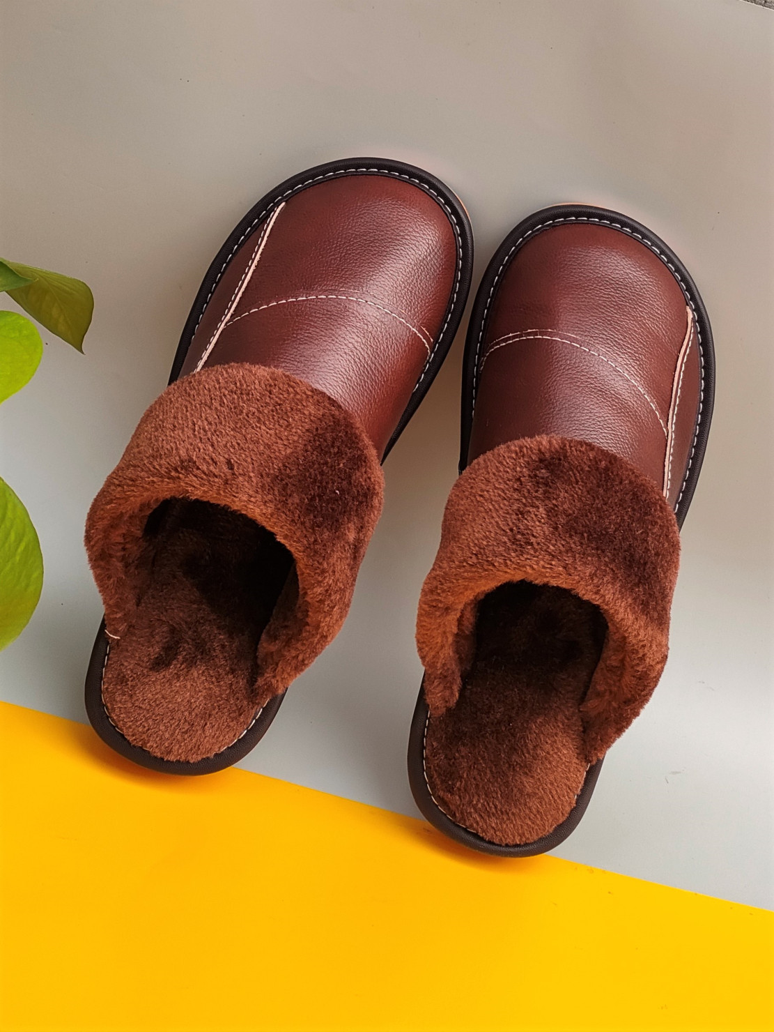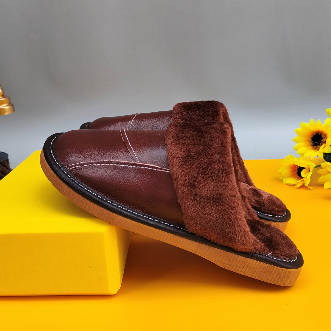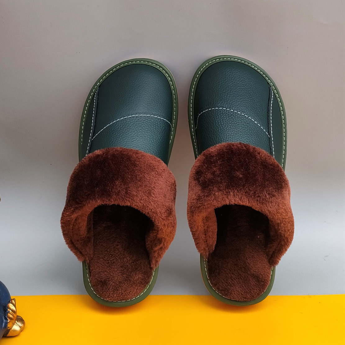 Мужские домашние женские тапочки из натуральной воловьей кожи, кожаные водонепроницаемые осенне-зимние нескользящие хлопковые туфли на толстой подошве с мехом