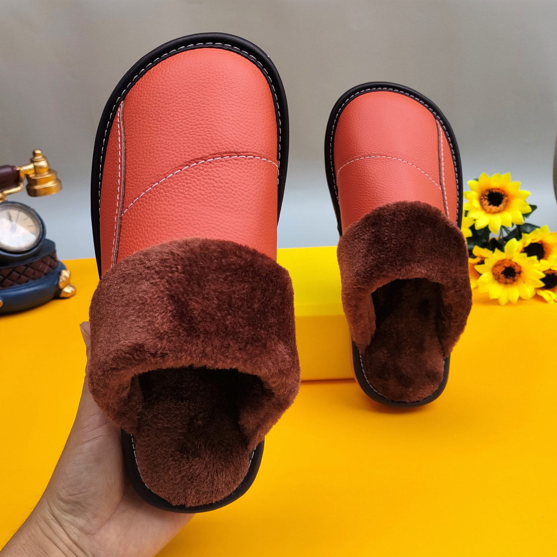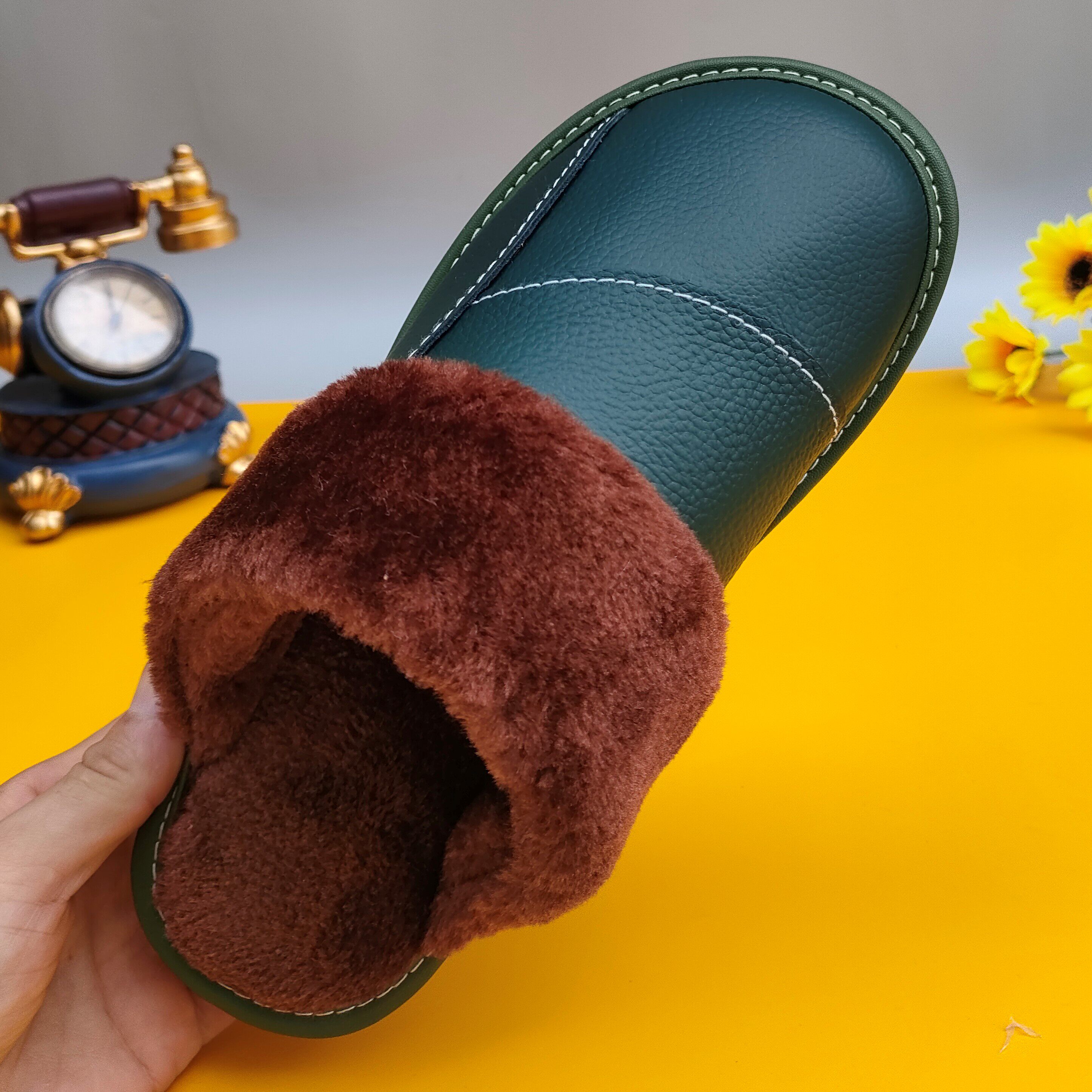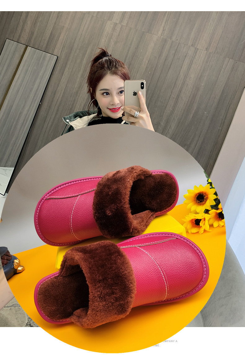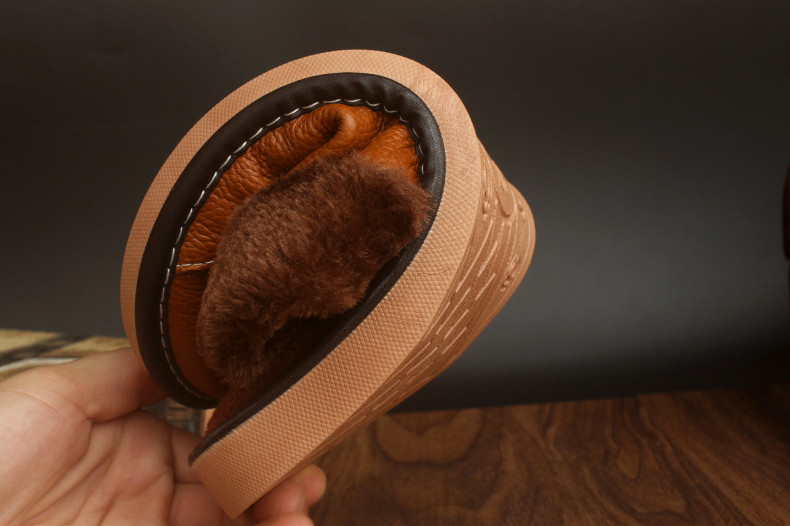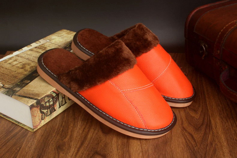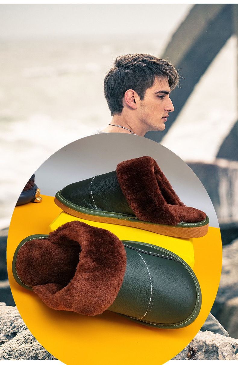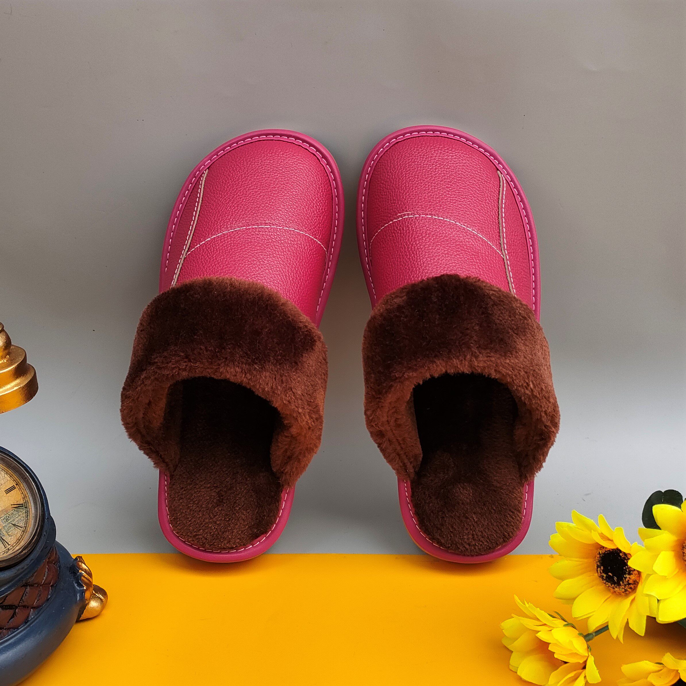 Мужские домашние женские тапочки из натуральной воловьей кожи, кожаные водонепроницаемые осенне-зимние нескользящие хлопковые туфли на толстой подошве с мехом