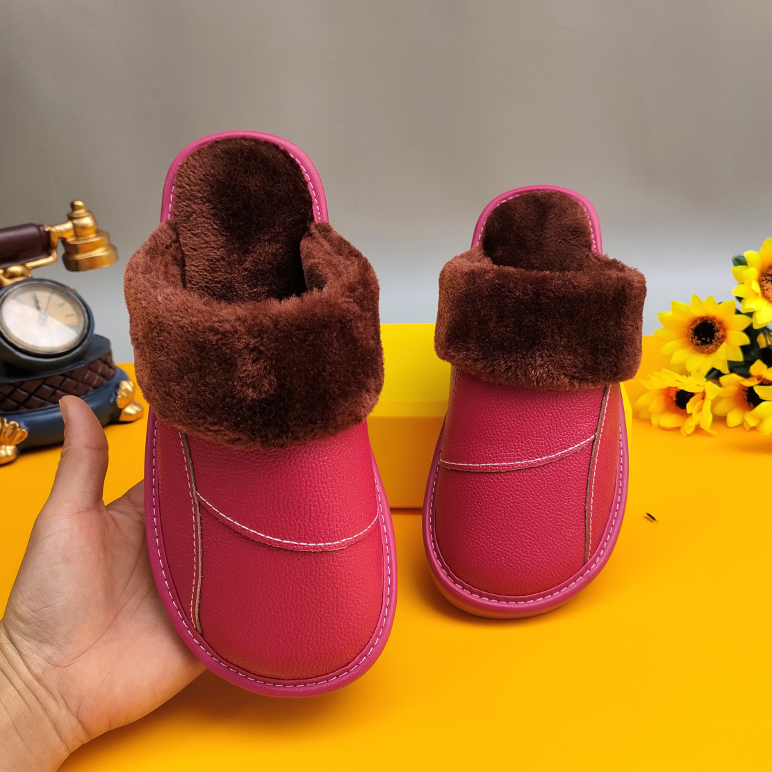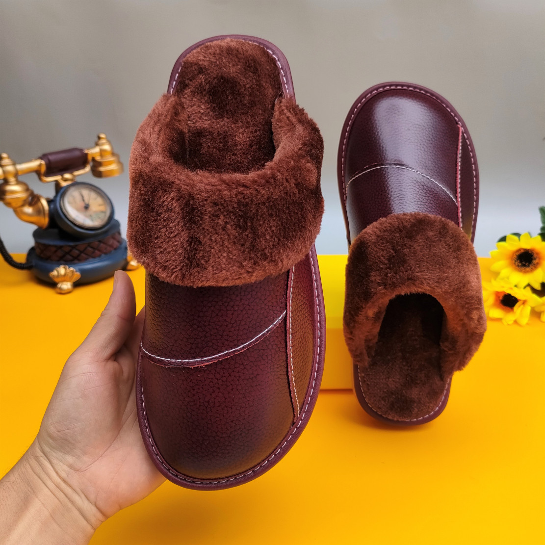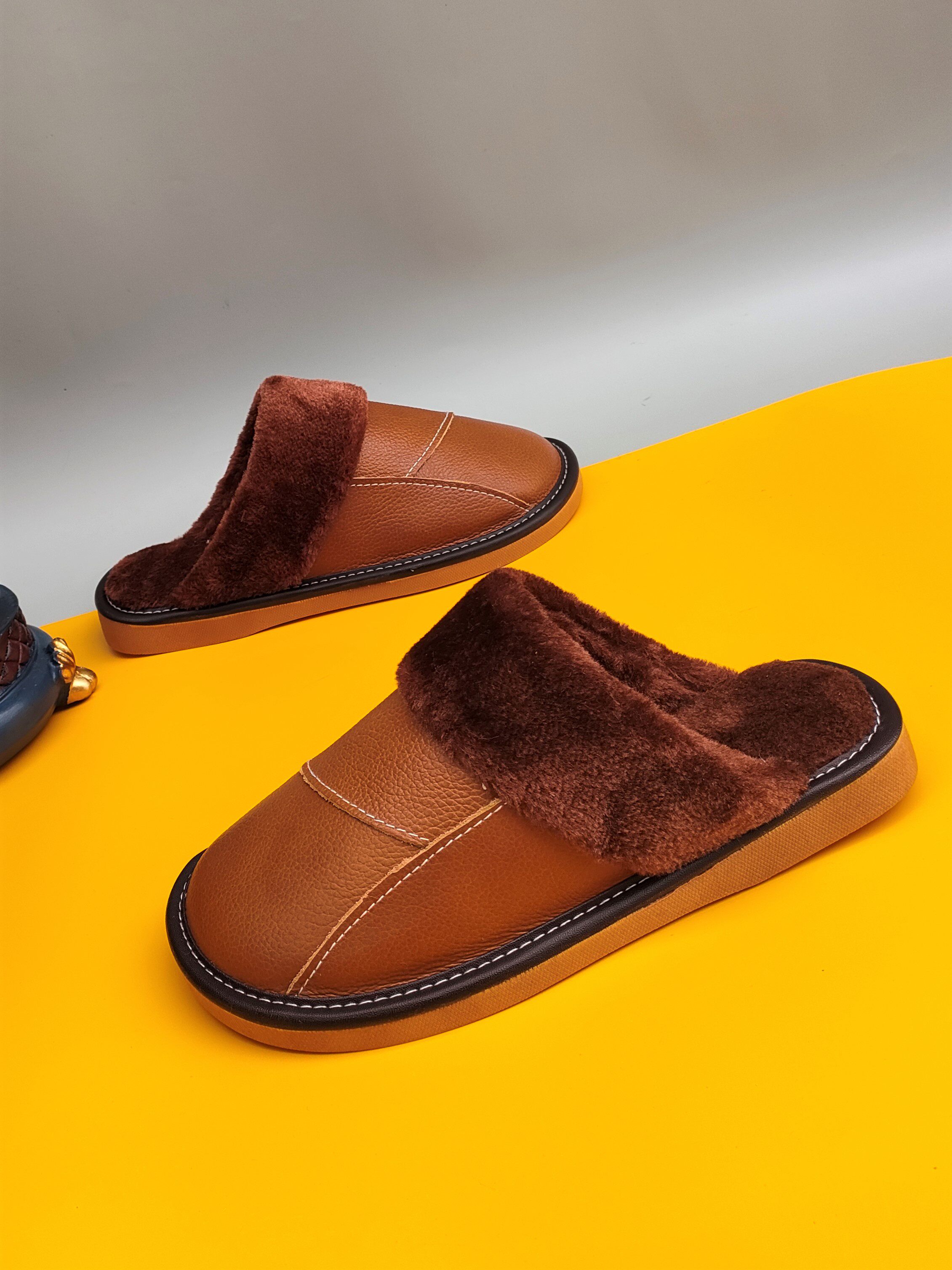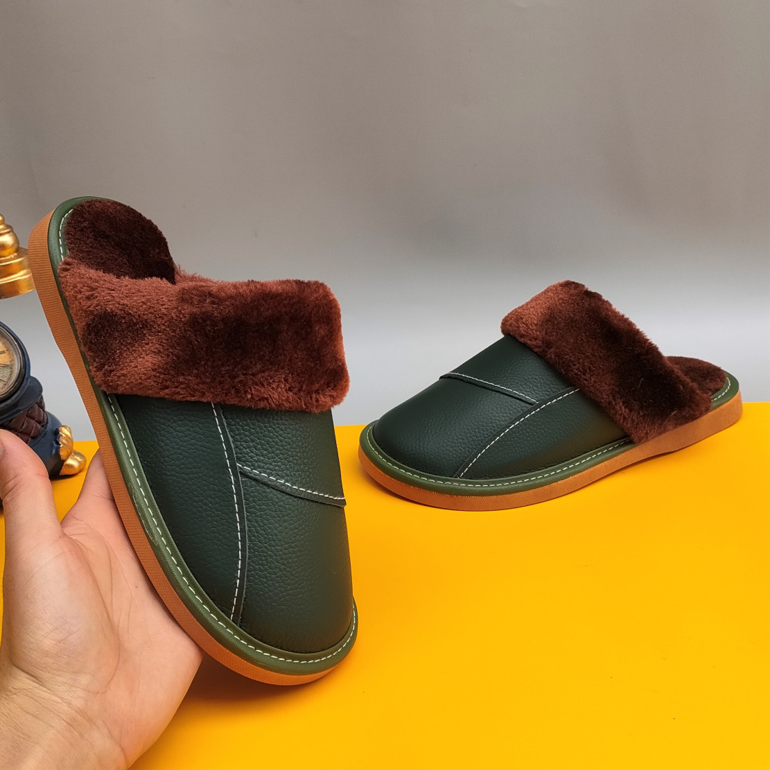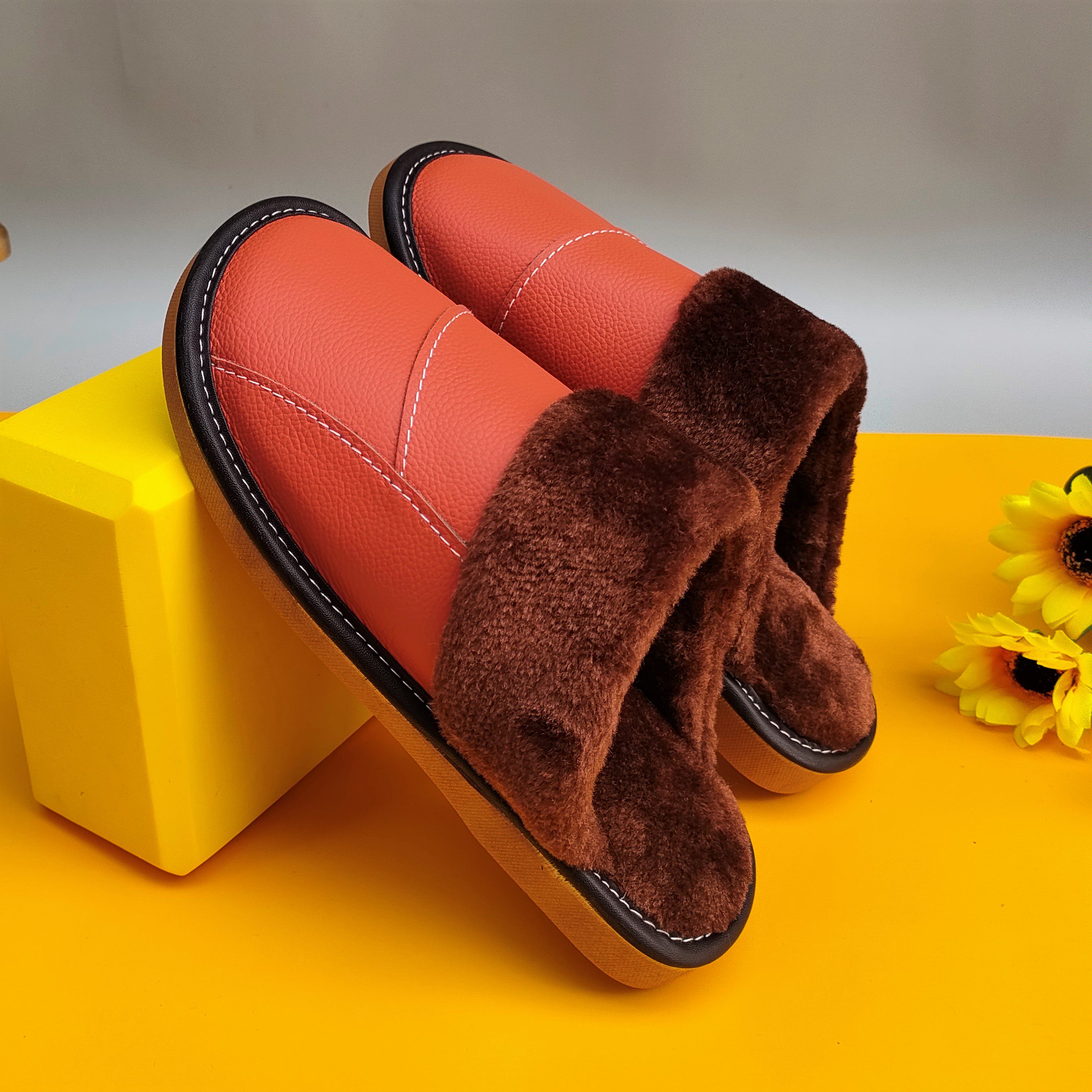 Мужские домашние женские тапочки из натуральной воловьей кожи, кожаные водонепроницаемые осенне-зимние нескользящие хлопковые туфли на толстой подошве с мехом