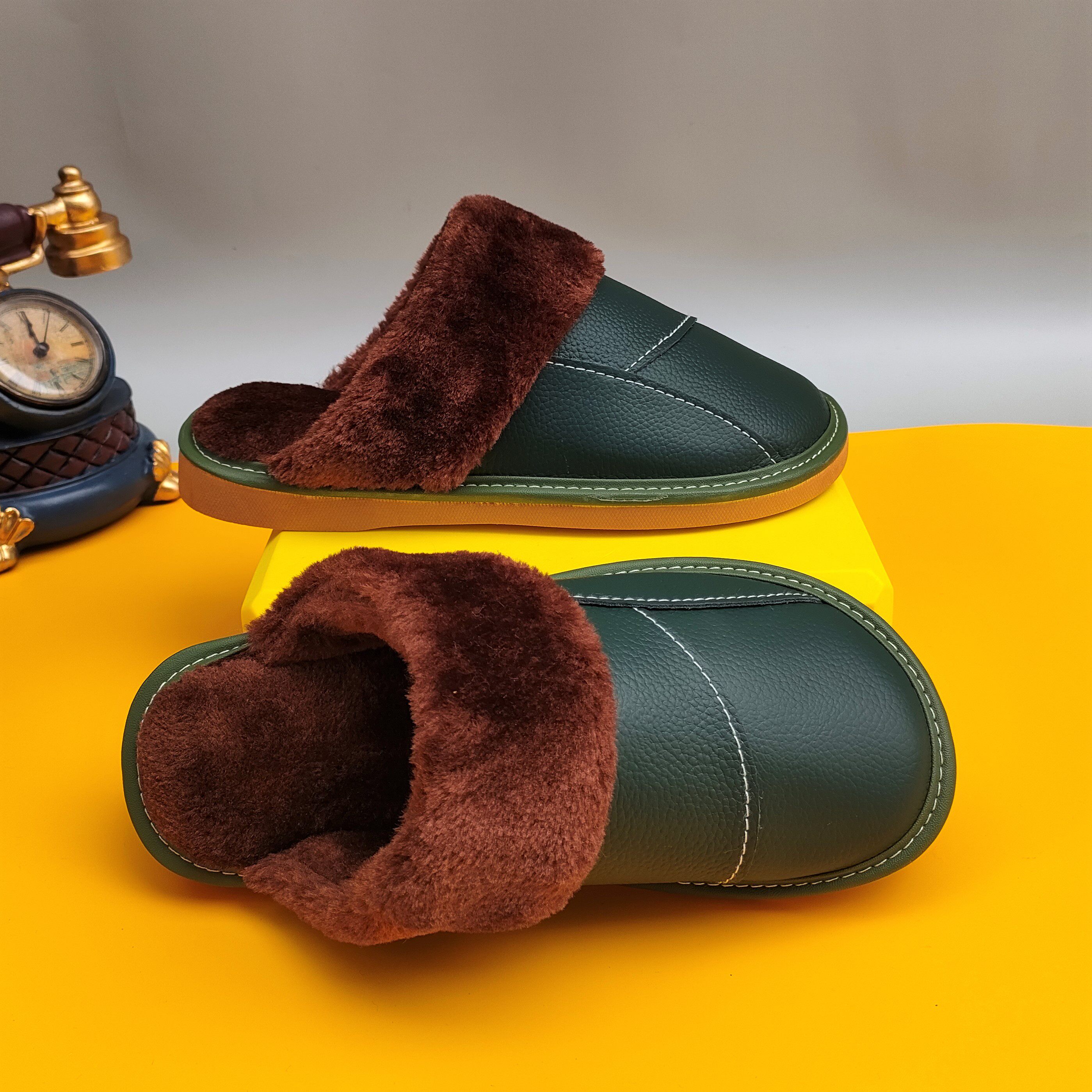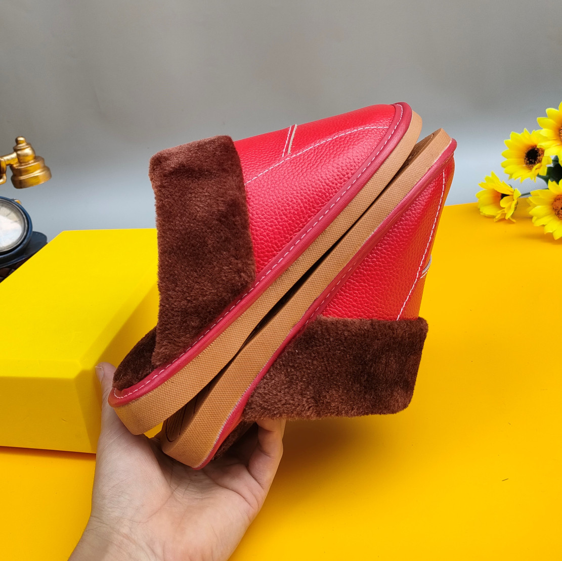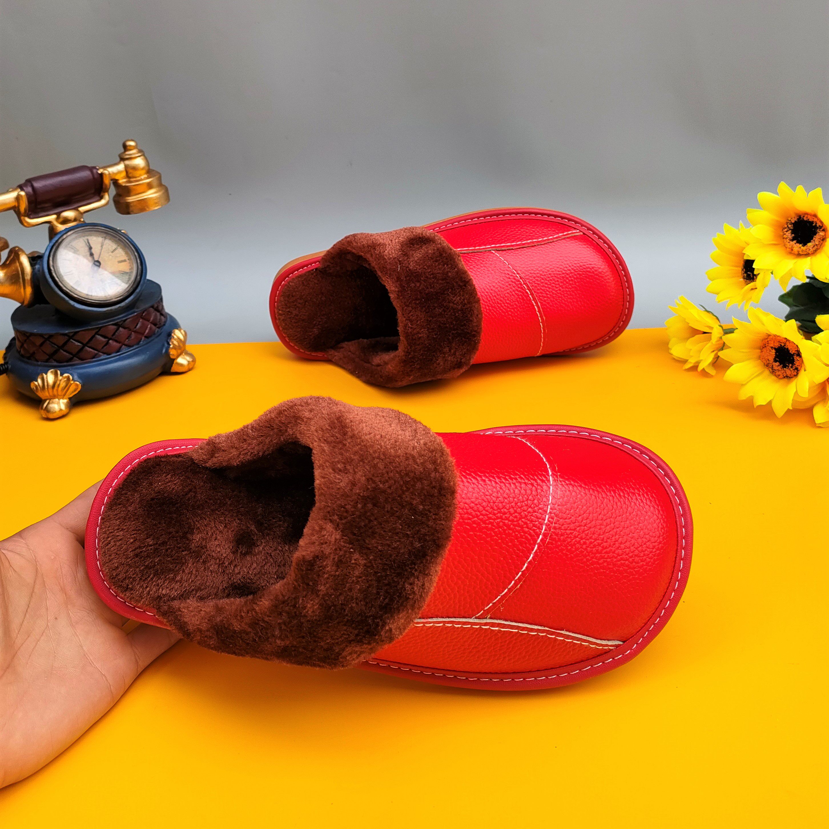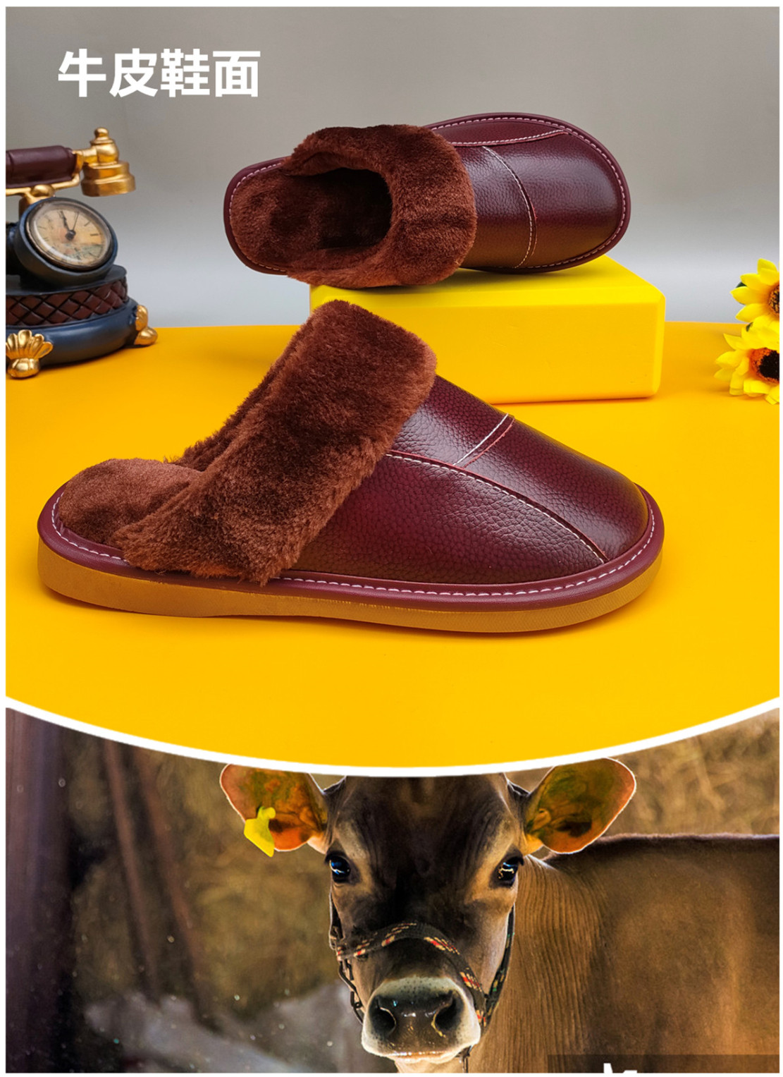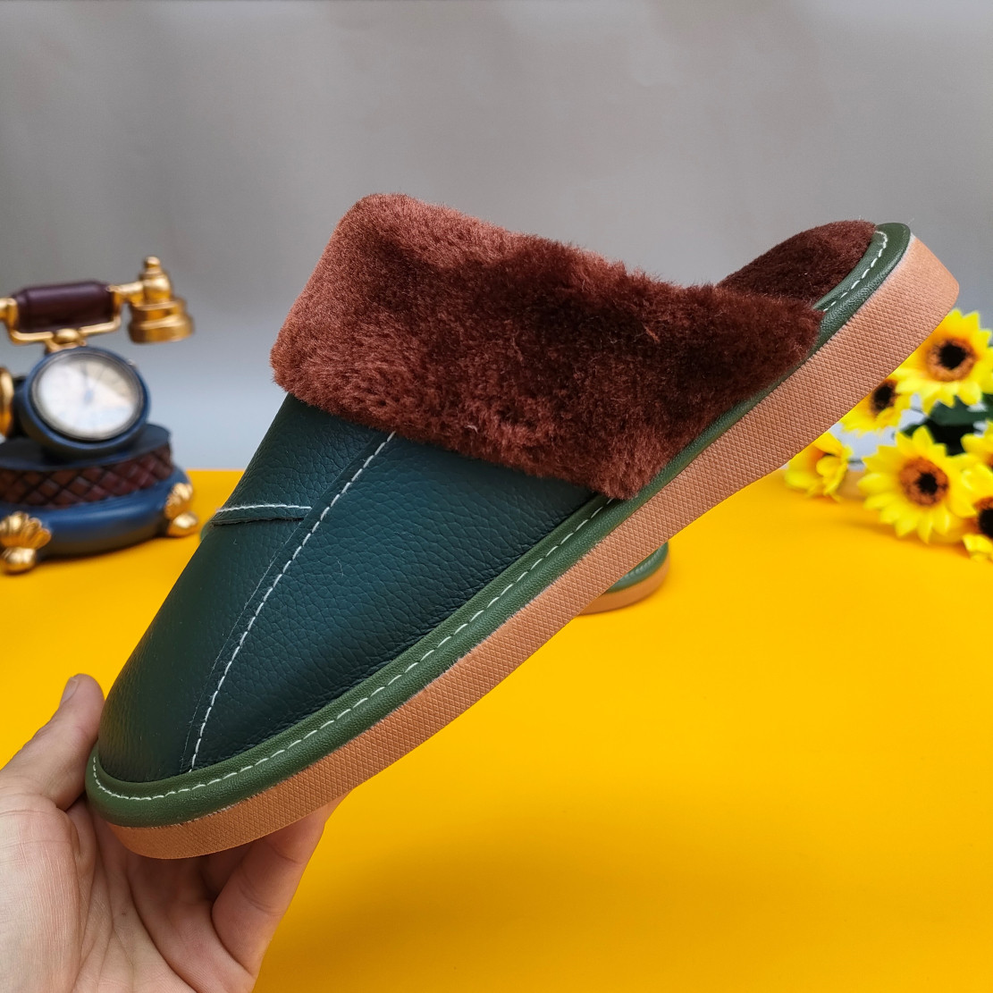 Мужские домашние женские тапочки из натуральной воловьей кожи, кожаные водонепроницаемые осенне-зимние нескользящие хлопковые туфли на толстой подошве с мехом
