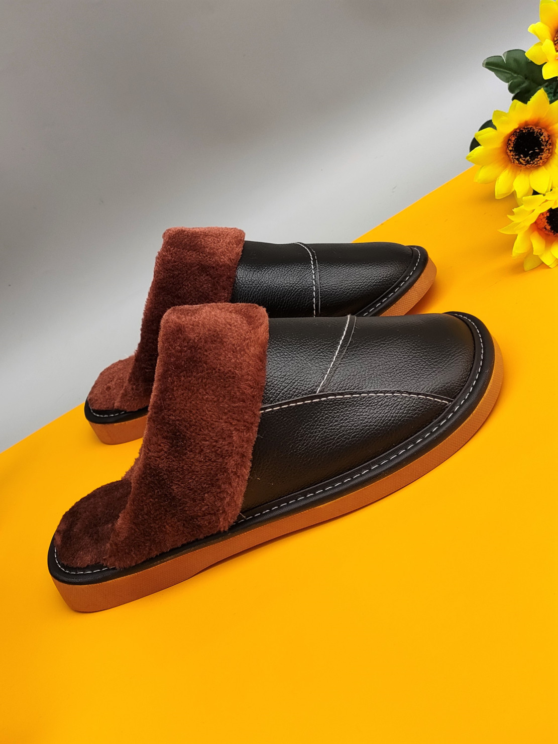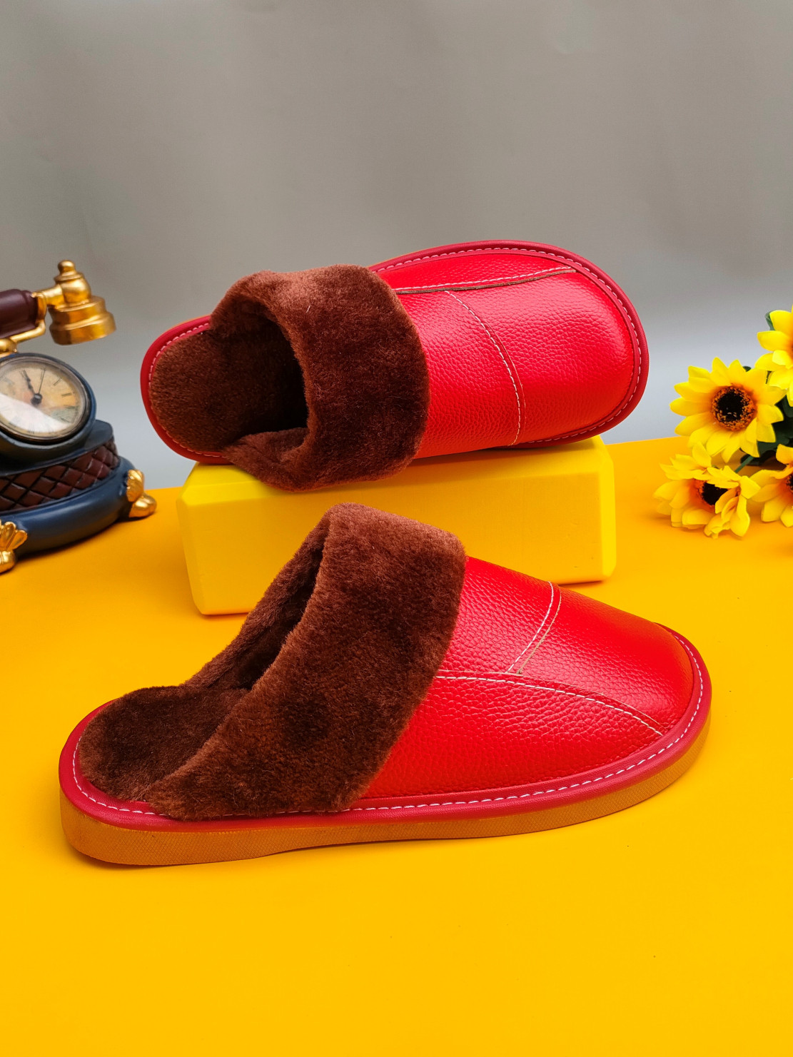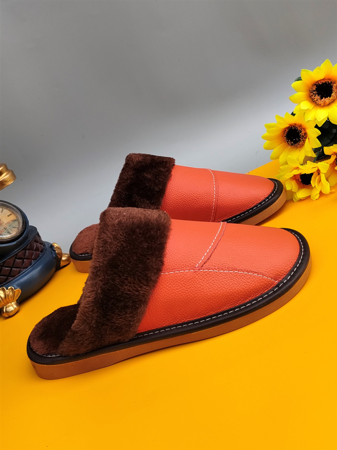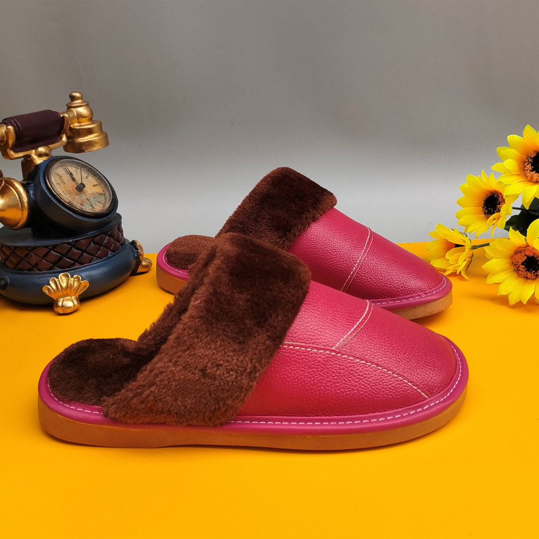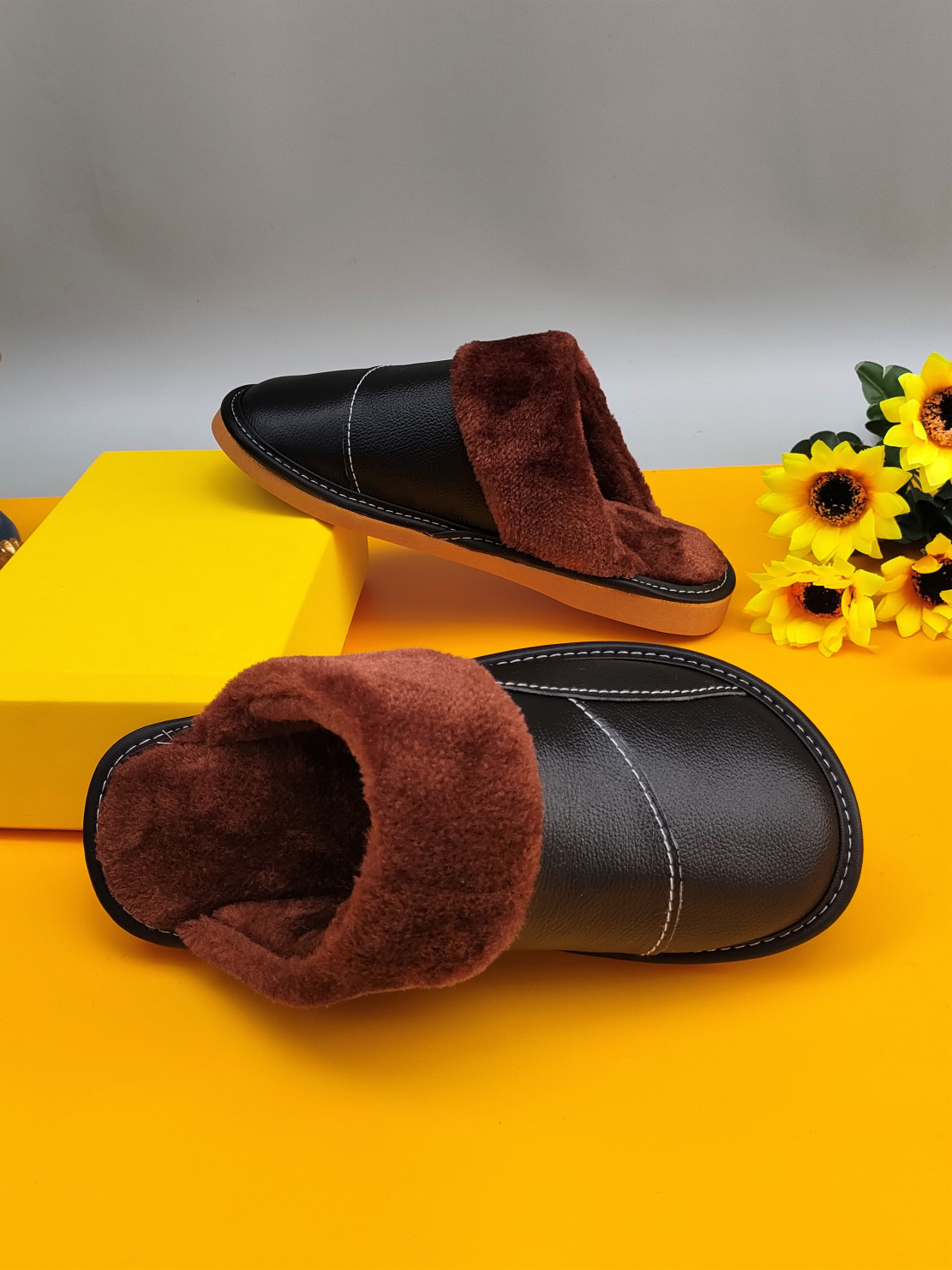 Мужские домашние женские тапочки из натуральной воловьей кожи, кожаные водонепроницаемые осенне-зимние нескользящие хлопковые туфли на толстой подошве с мехом