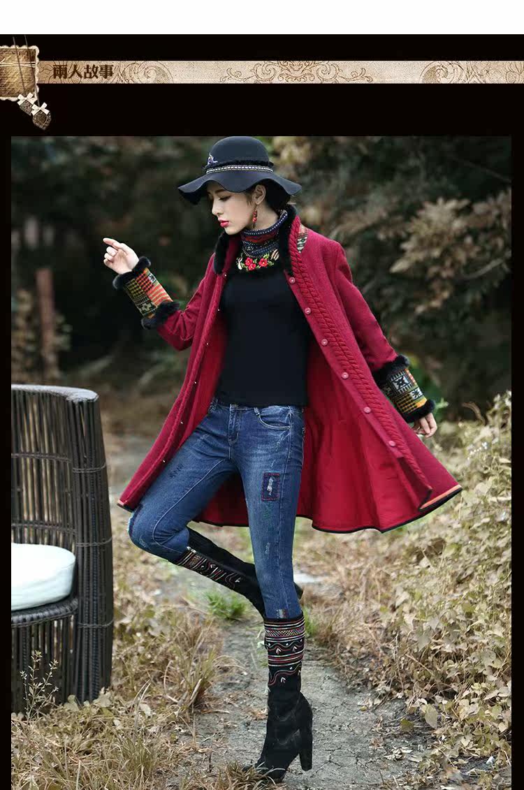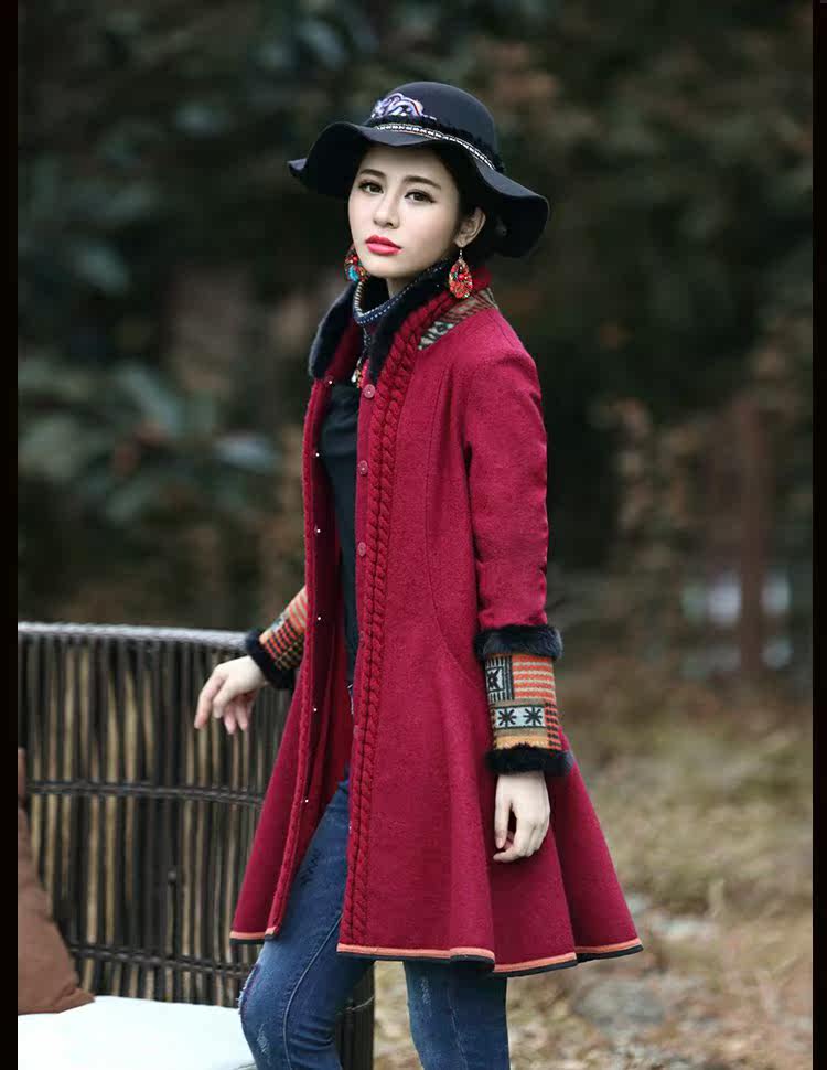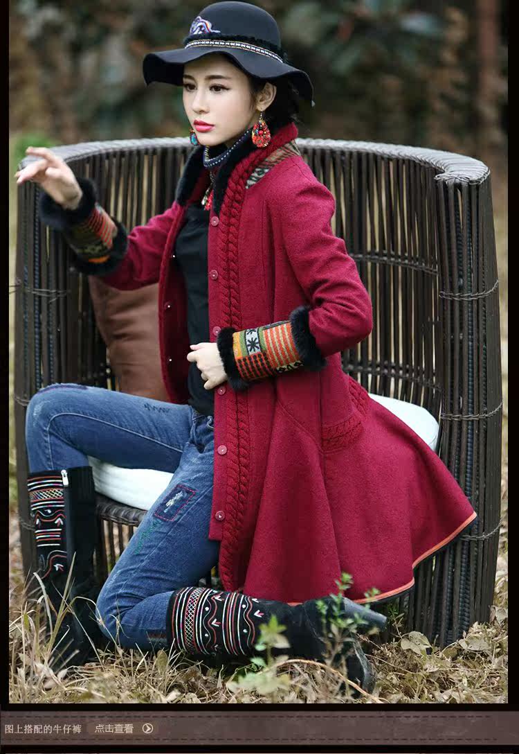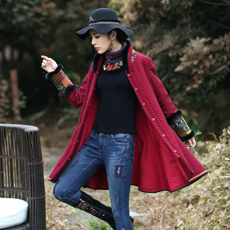 Этнический ретро пуховик, длинное шерстяное пальто, куртка, этнический стиль, средней длины, свободный крой