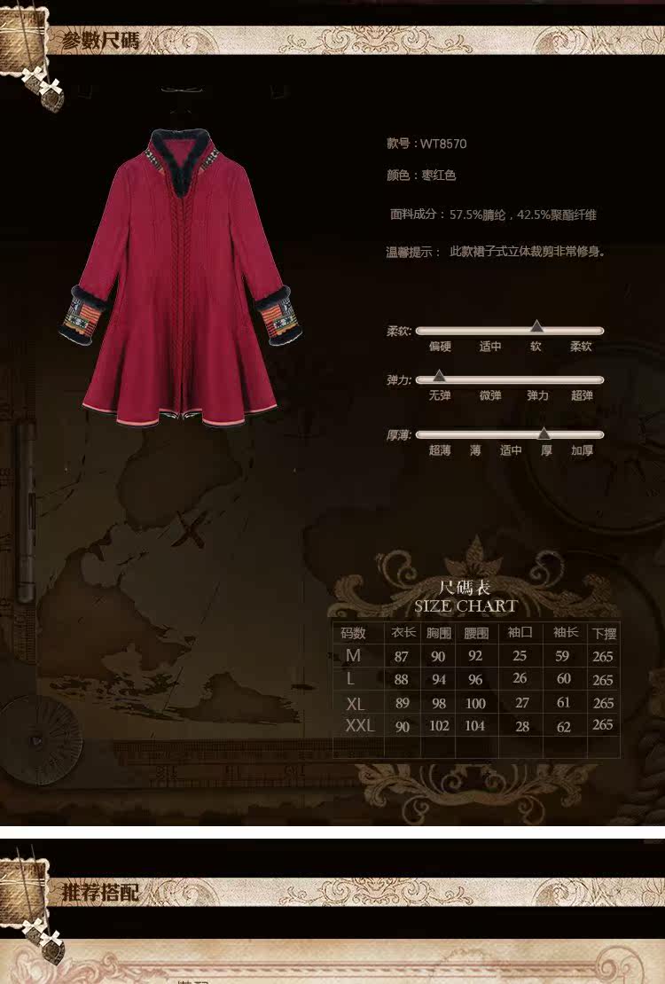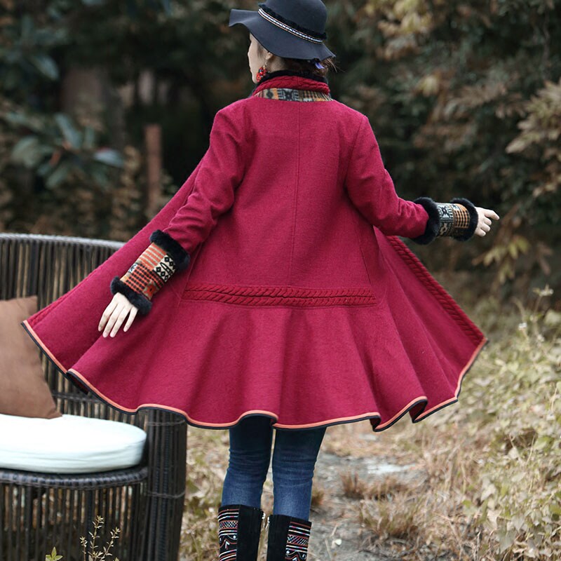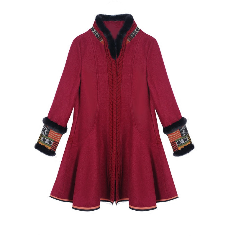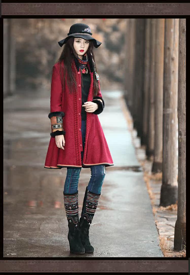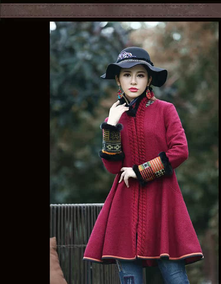 Этнический ретро пуховик, длинное шерстяное пальто, куртка, этнический стиль, средней длины, свободный крой