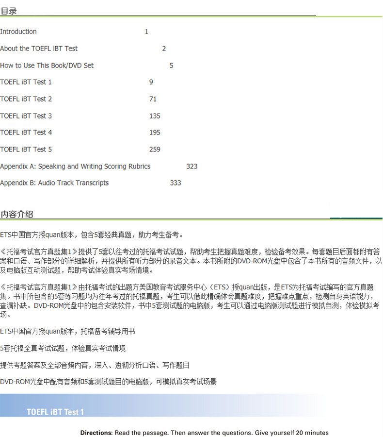 Найдите новую версию новой Oriental Toefl Exam Office Office Office Office Collection 1 TOEFL Office IBT -тесты ETS ETS ETS AMERIC