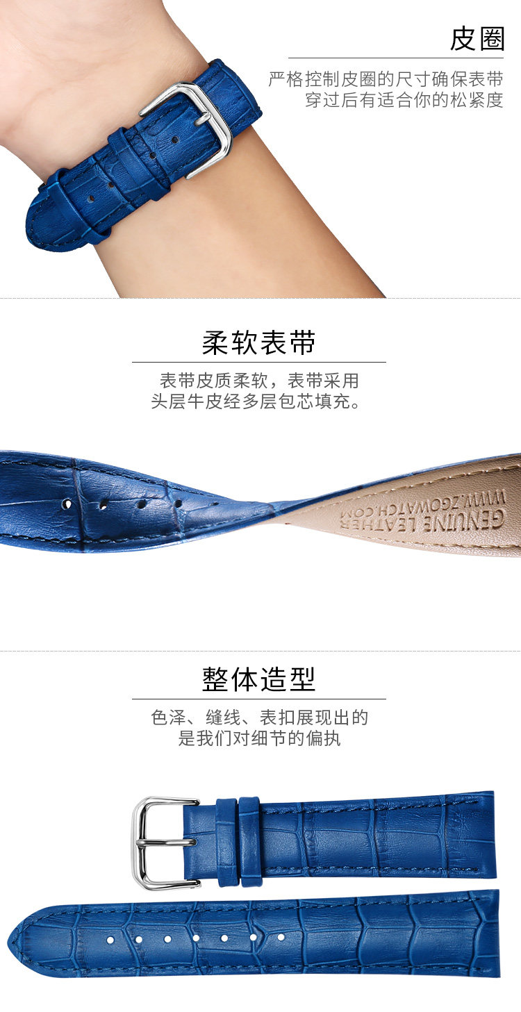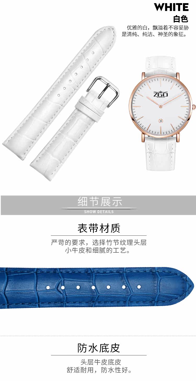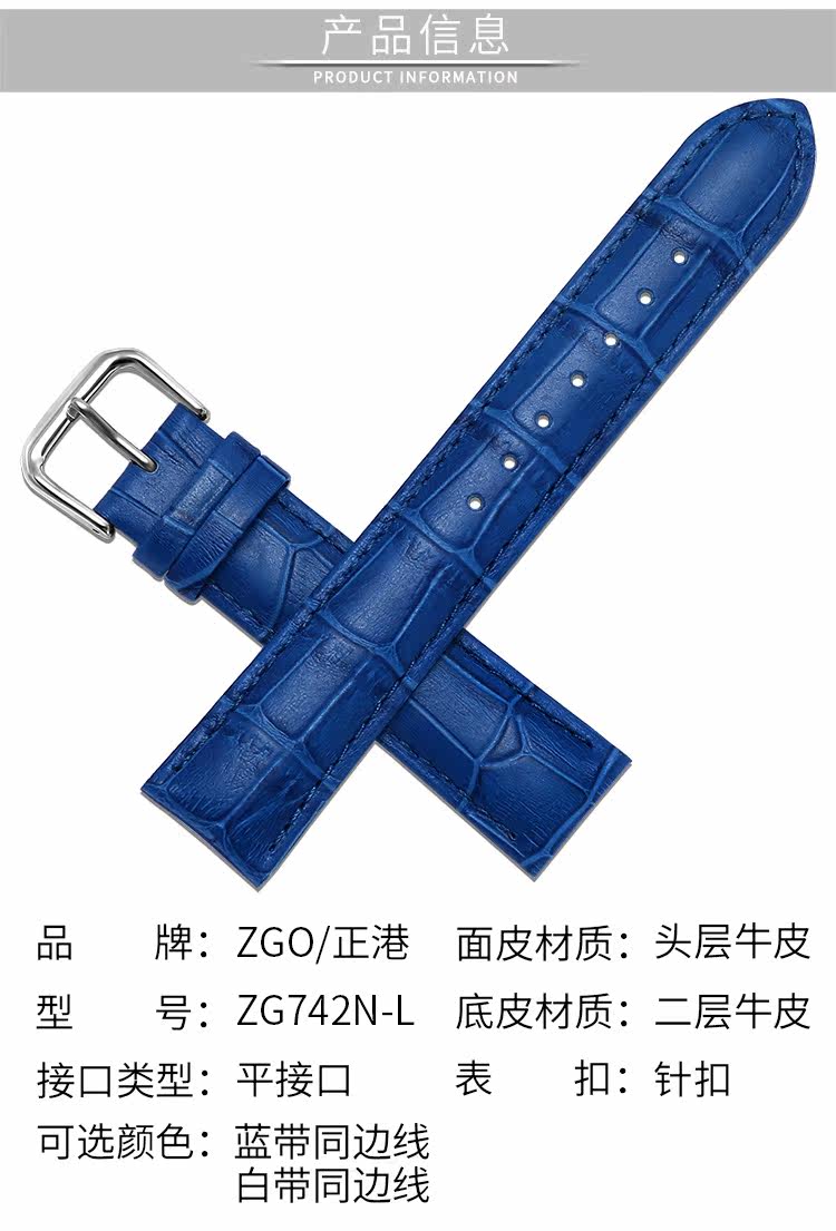 正港 Armani, синий ремешок для часов, кожаные часы, ремень, белый аксессуар подходит для мужчин и женщин, 22мм