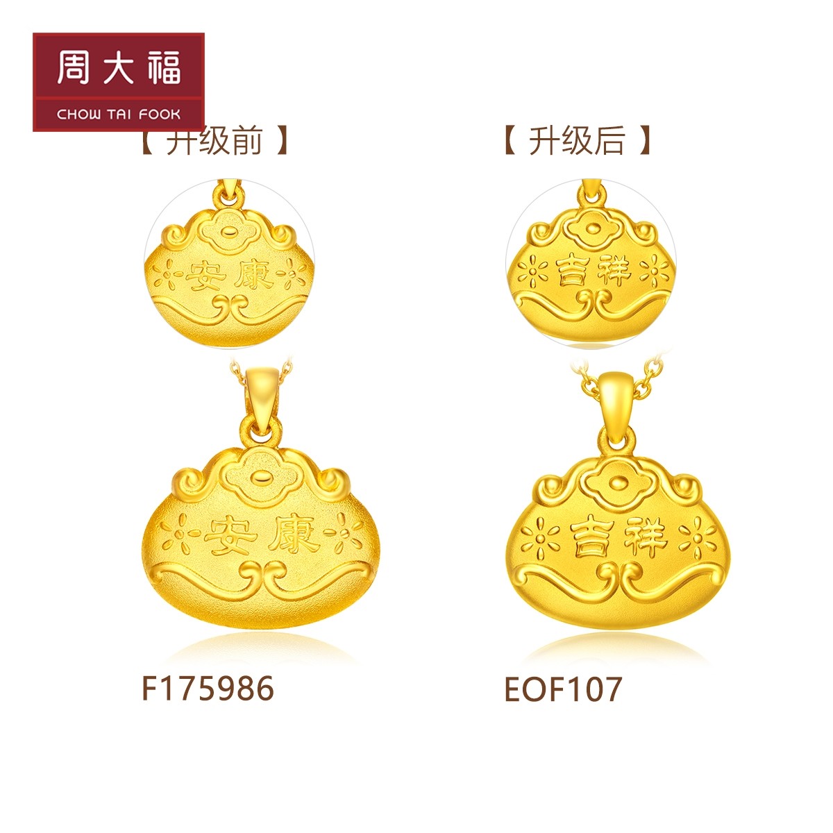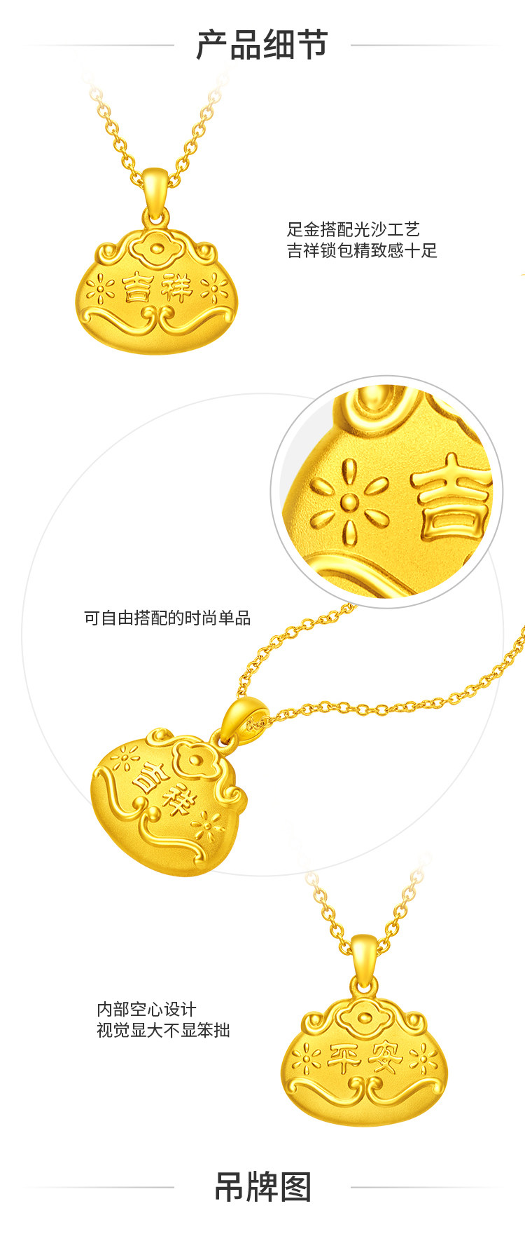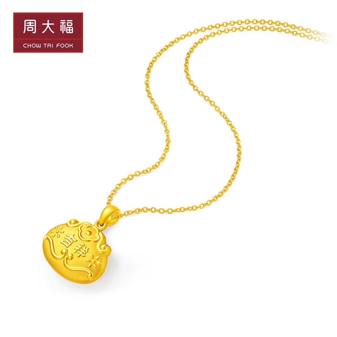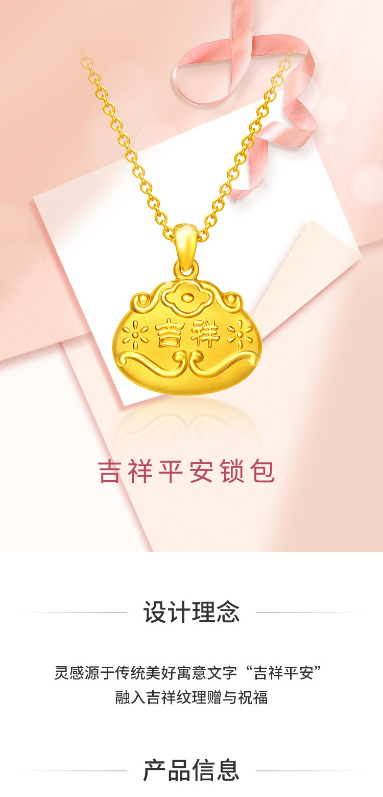 周大福 Счастье Ankang, благоприятный золотой замок длинный -Life Lock Gold Penent, цена EOF107 подарок