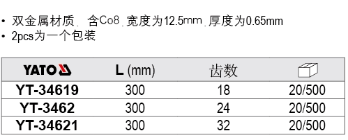 | Классификация цветов: | YT-34619 18 зубов (2 установлены), YT-3462 24 зуб (2 установлен), YT-34621 32 зубы (2 установлены) |