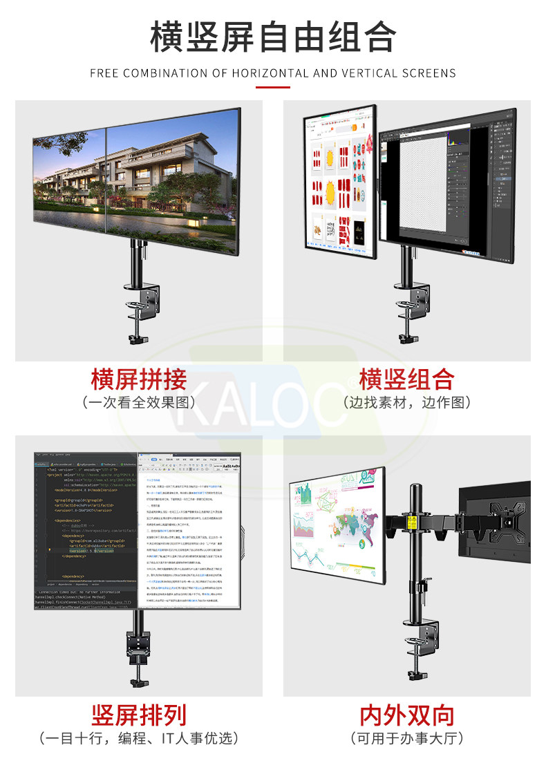 Kaloc Dual -Escreen Display Desktop Office Office Ratching Computer Display Экран Экран Базовый Кронт базовый кронштейн