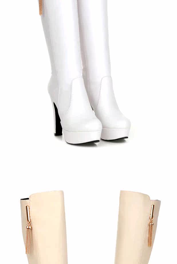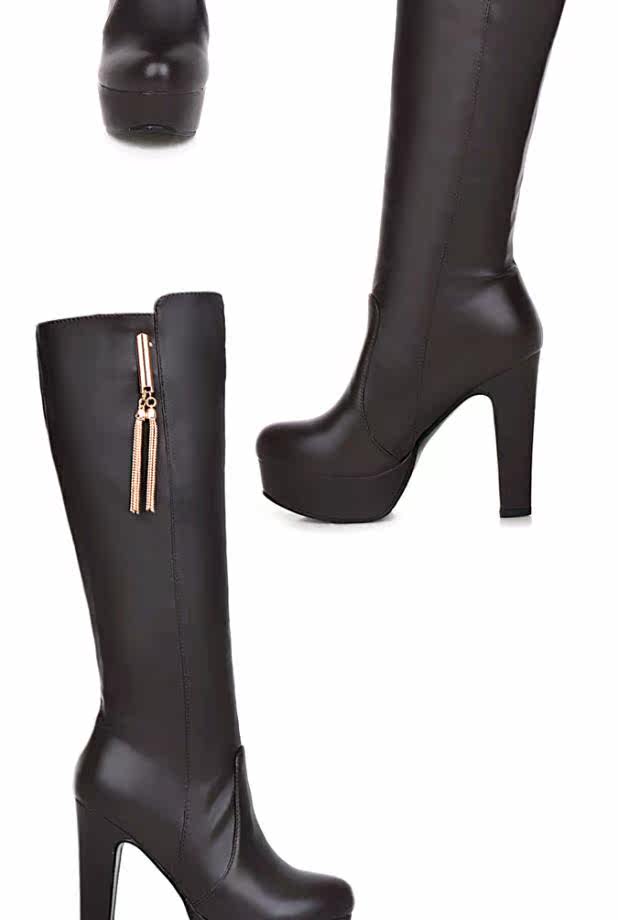 Женские сапоги больших размеров 40-43, осенние новые высокие сапоги 2015, пикантные непромокаемые рыцарские сапоги на очень высоком каблуке на толстой подошве