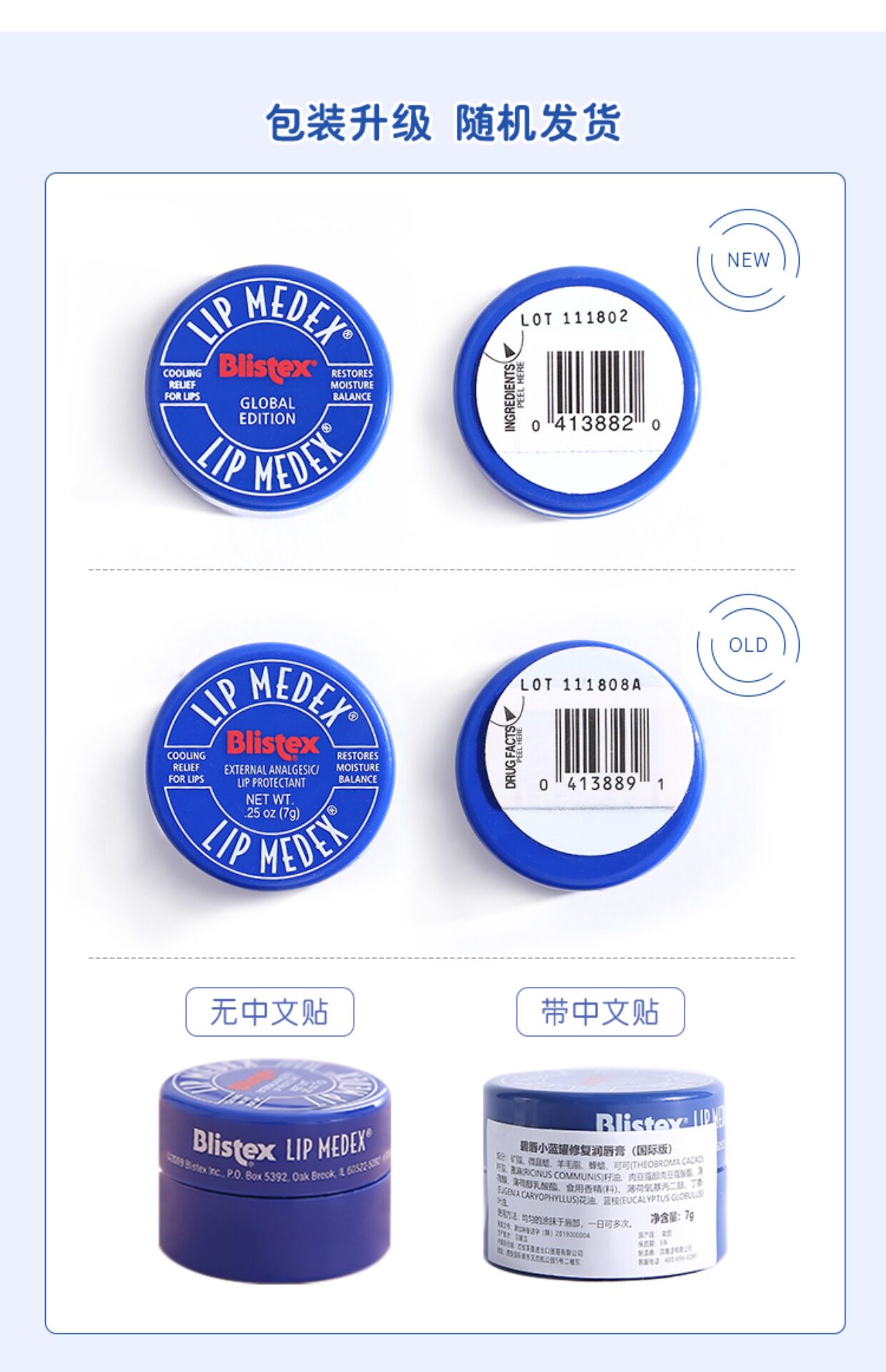 | Чистый контент: | 7G (маленькая синяя банка), Милый бальзам для губ, 4.28г, Мятный бальзам для губ, 4.29г |