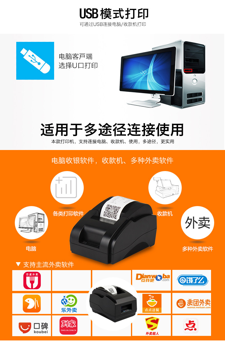 维融 Thermista Takeaway Printer Supermarket Supermarket Catering Cashier Билл 58 мм Meituan -это голодный?