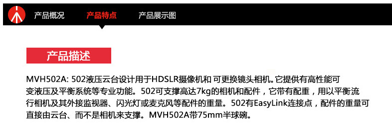 Manfrotto MVH502A 502HD камера Гидравлическая птица наблюдать за брюками 75 -мм миска полушария
