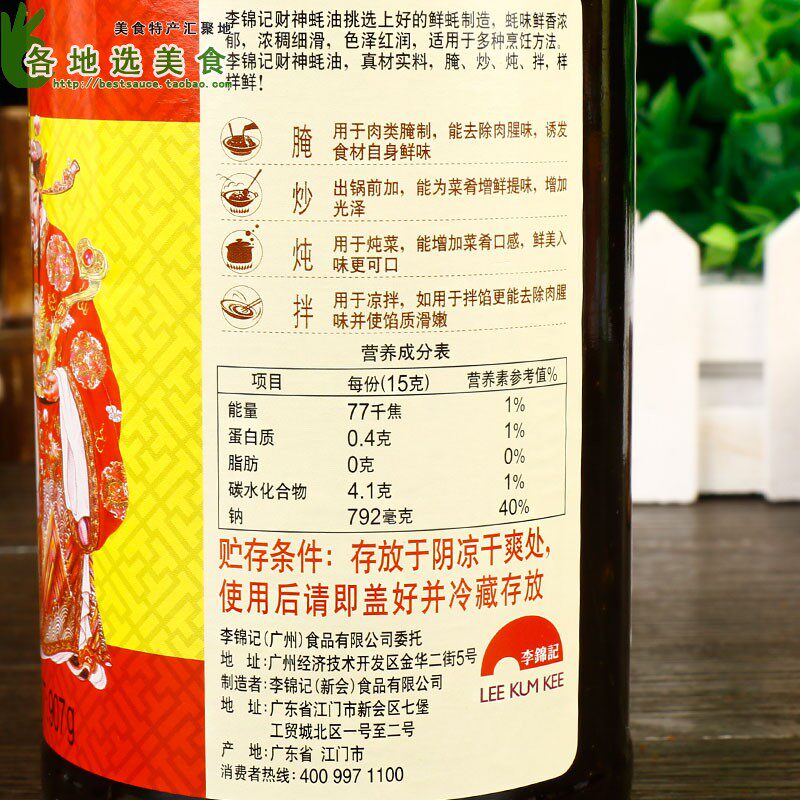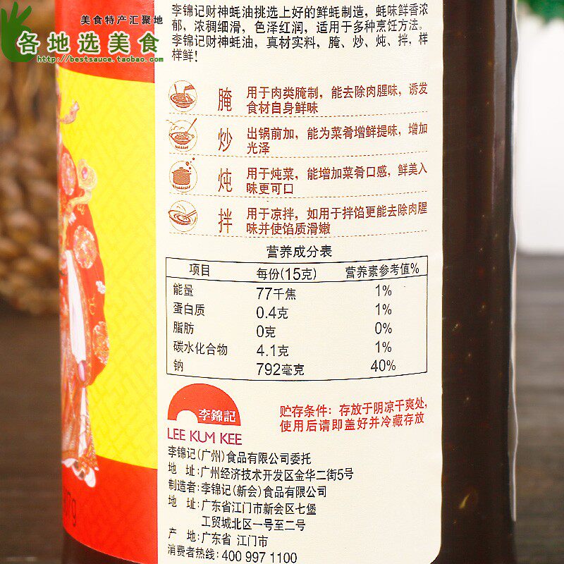 Li Jinji Caishen Oyster Sauce 907G*3 Бутылки кухонной приправы, потребление масла, блюда с холодным атмосфером, приправы с маринованным горячим горшком