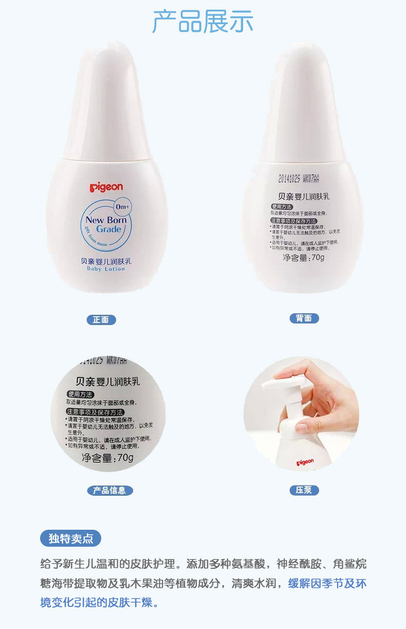 Pigeon, детское увлажняющее молочко для тела для новорожденных для ухода за кожей, детский увлажняющий лосьон для ухода за кожей, 70г