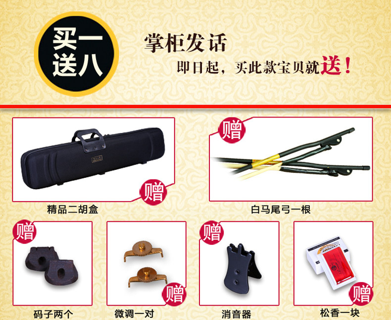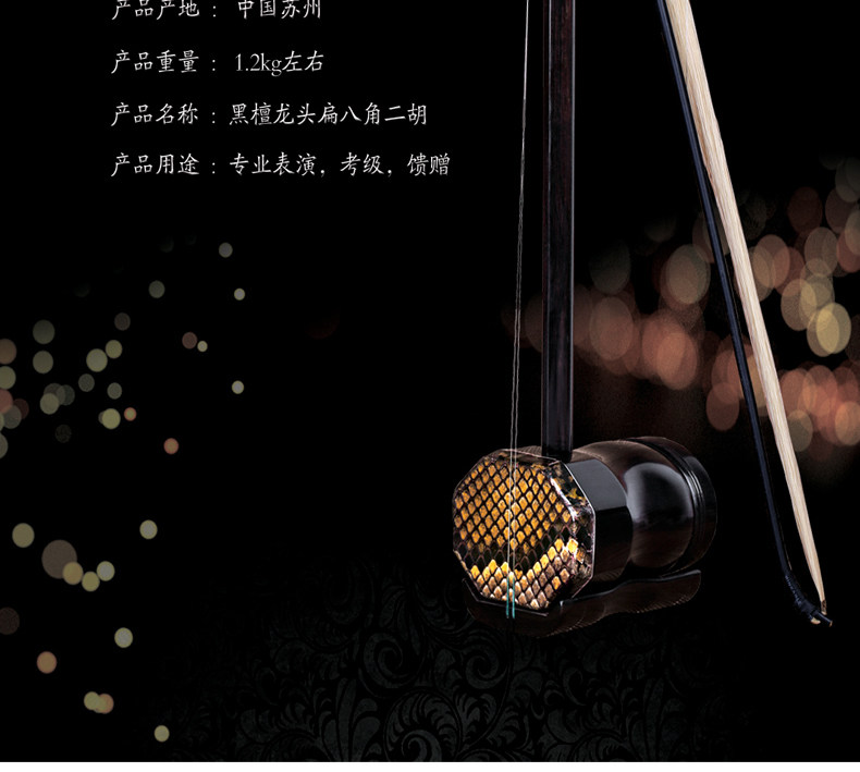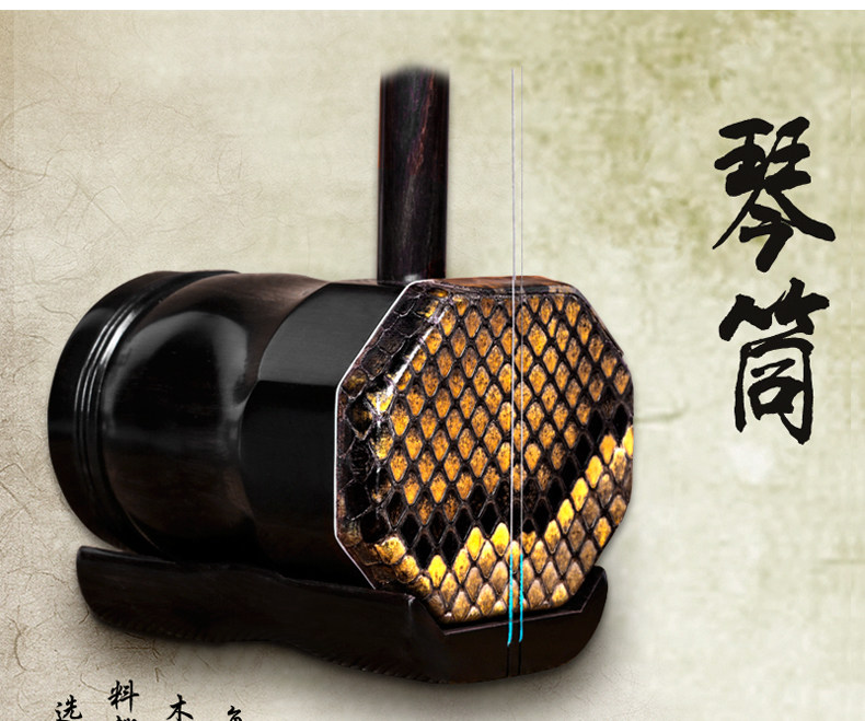 Национальный музыкальный инструмент Suzhou Национальный музыкальный инструмент Ebony Faucet, плоский восьмиугольный тест на музыкальный инструмент Erhu, восьмиугольный лидер Huhean, Erhu