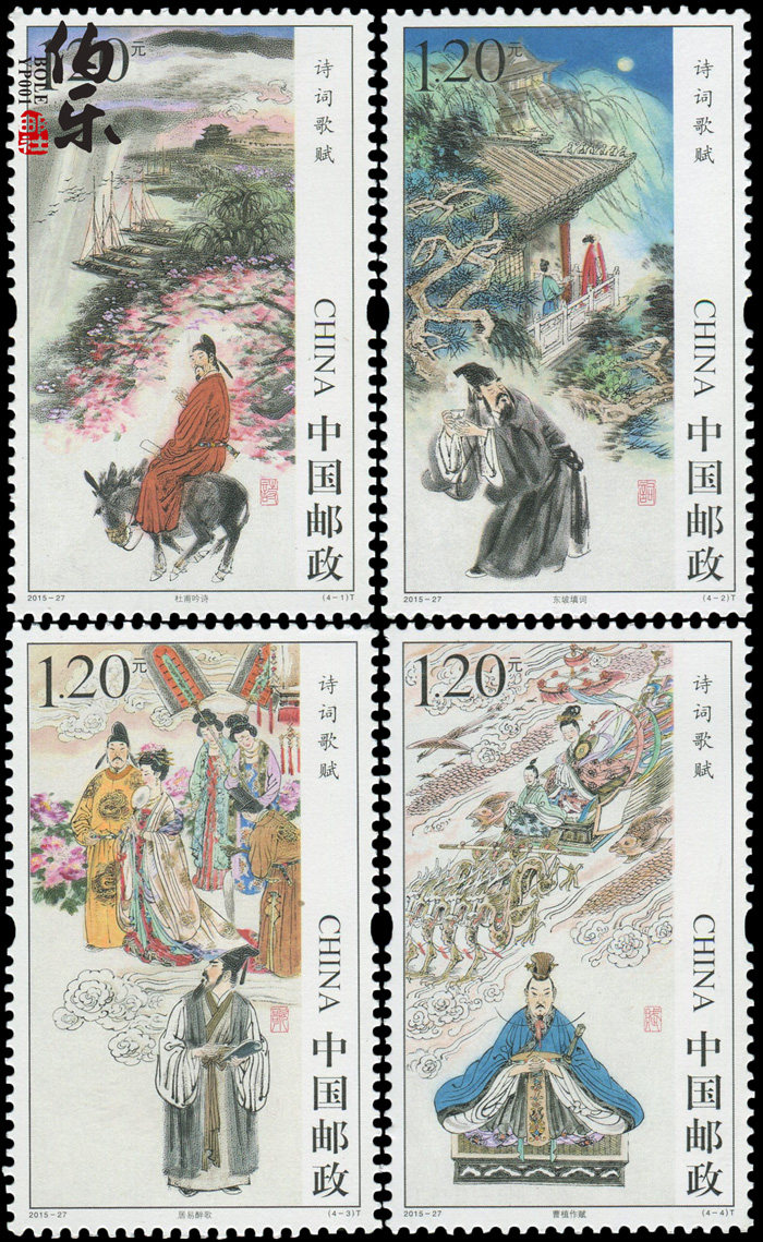 China Post планирует выпустить 4 специальных марок для "Poetry and Song Fu" 12 ноября 2015 года.Детали следующие:
