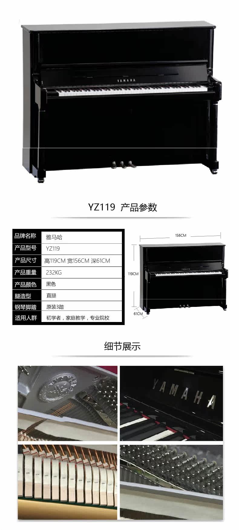 Yamaha/Yamaha Piano 88 Key Heavy Hammer YZ119/122/132PE Вертикальный дом профессиональный экзамен на фортепиано