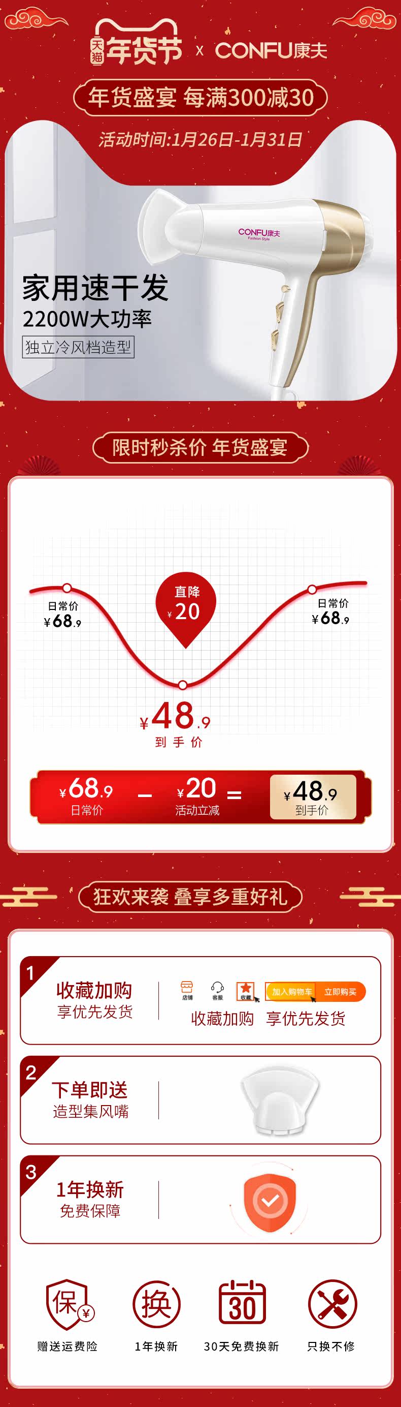 康夫 Волочная парикмахерская высокая мощность горячий и холодный воздух не повредит для волос.