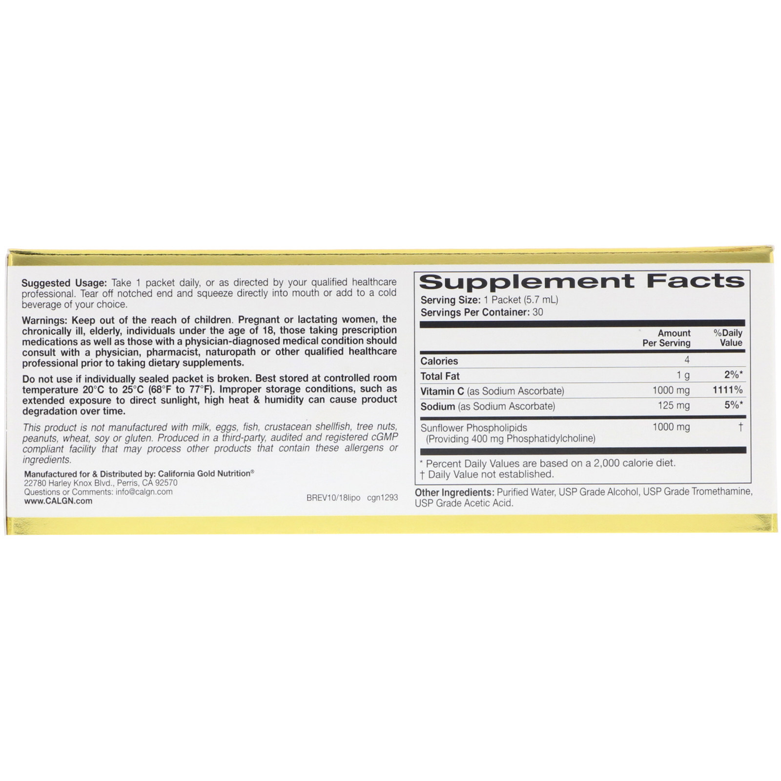 Наши липосомы проходят строгие процедуры контроля качества, чтобы сохранить липидные соединения и гарантировать, что витамин С инкапсулируется в мембране липосом без разделения.Эта премиальная веганская формула содержит: сою, биографию ГМО, глютен, подсластитель, искусственные ароматы и консерванты.